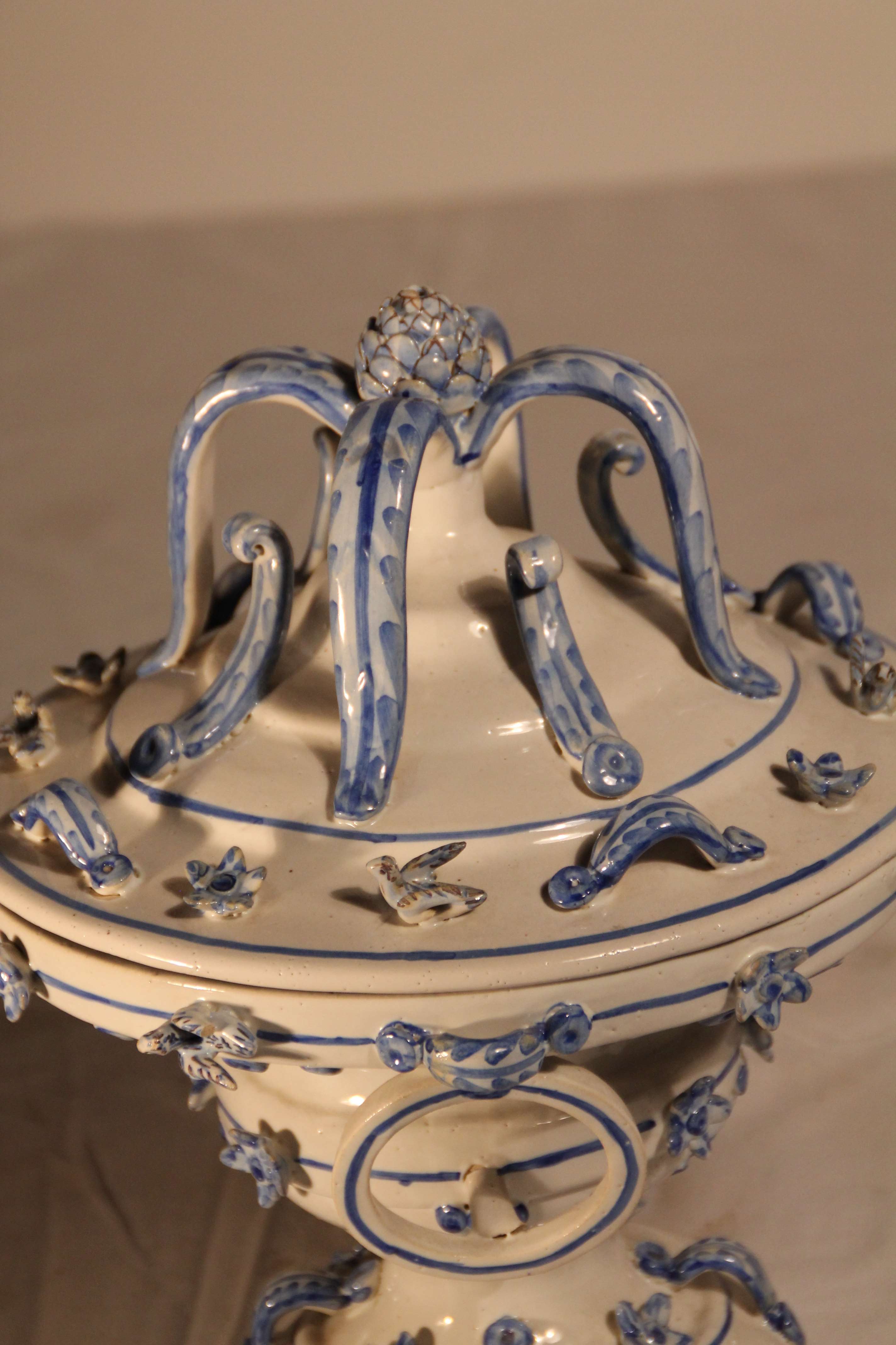 Cerámica albahaquera adornada Barroca con tapa. Policromía Artesanal decorada a mano.
