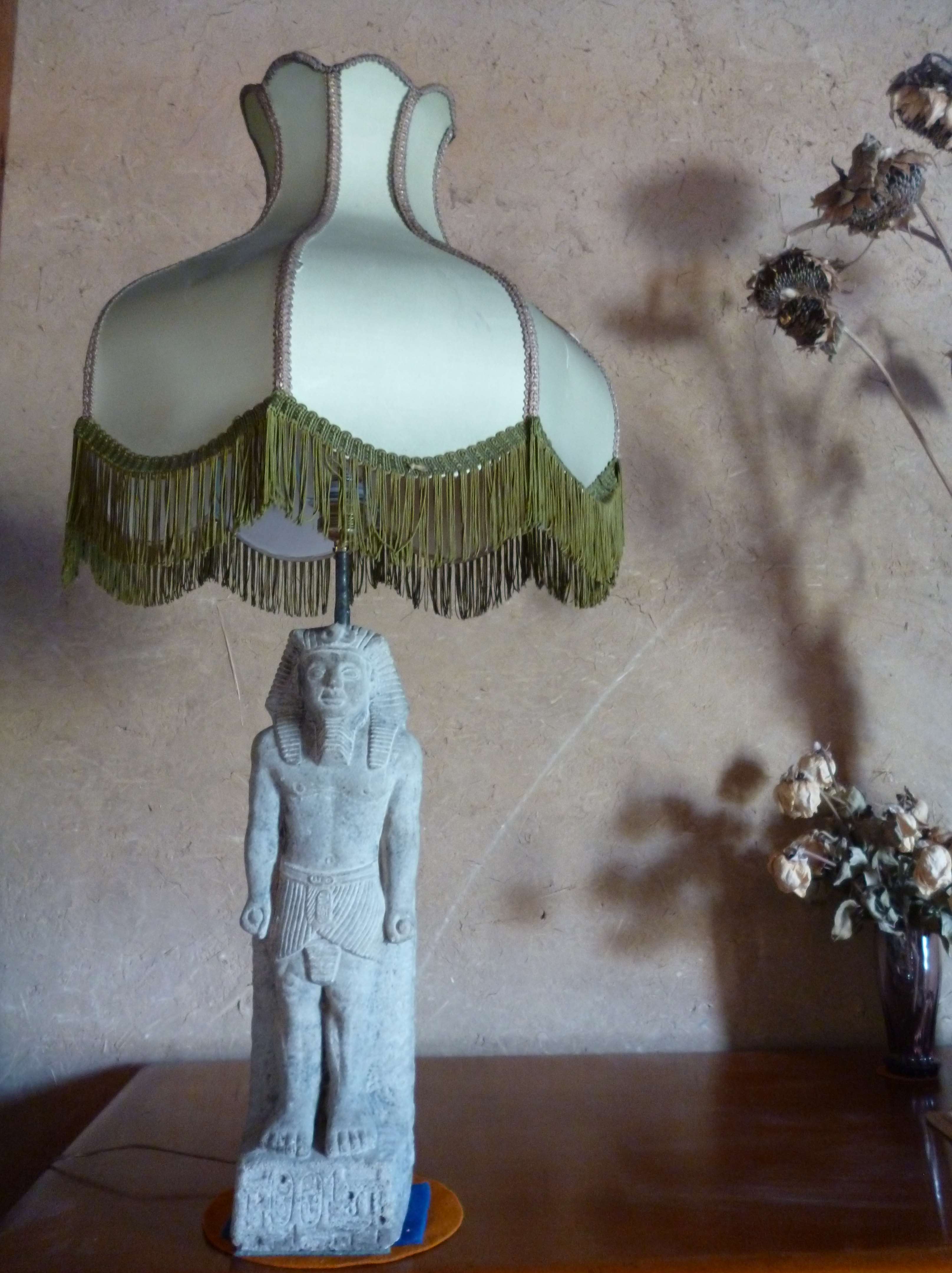 Lampara de sobremesa – Piedra Base de lampara de Faraon Egipcio, tallada en piedra, con inscripciones de jeroglíficos en su base. Pantalla artesanal, tipo pergamino cosido, con flecos Vintage «sustituible» 210 € Compártelo: Haz clic para compartir en X (Se abre en una ventana nueva) X Haz clic para compartir en Facebook (Se abre en una ventana nueva) Facebook Me gusta Cargando... Relacionado