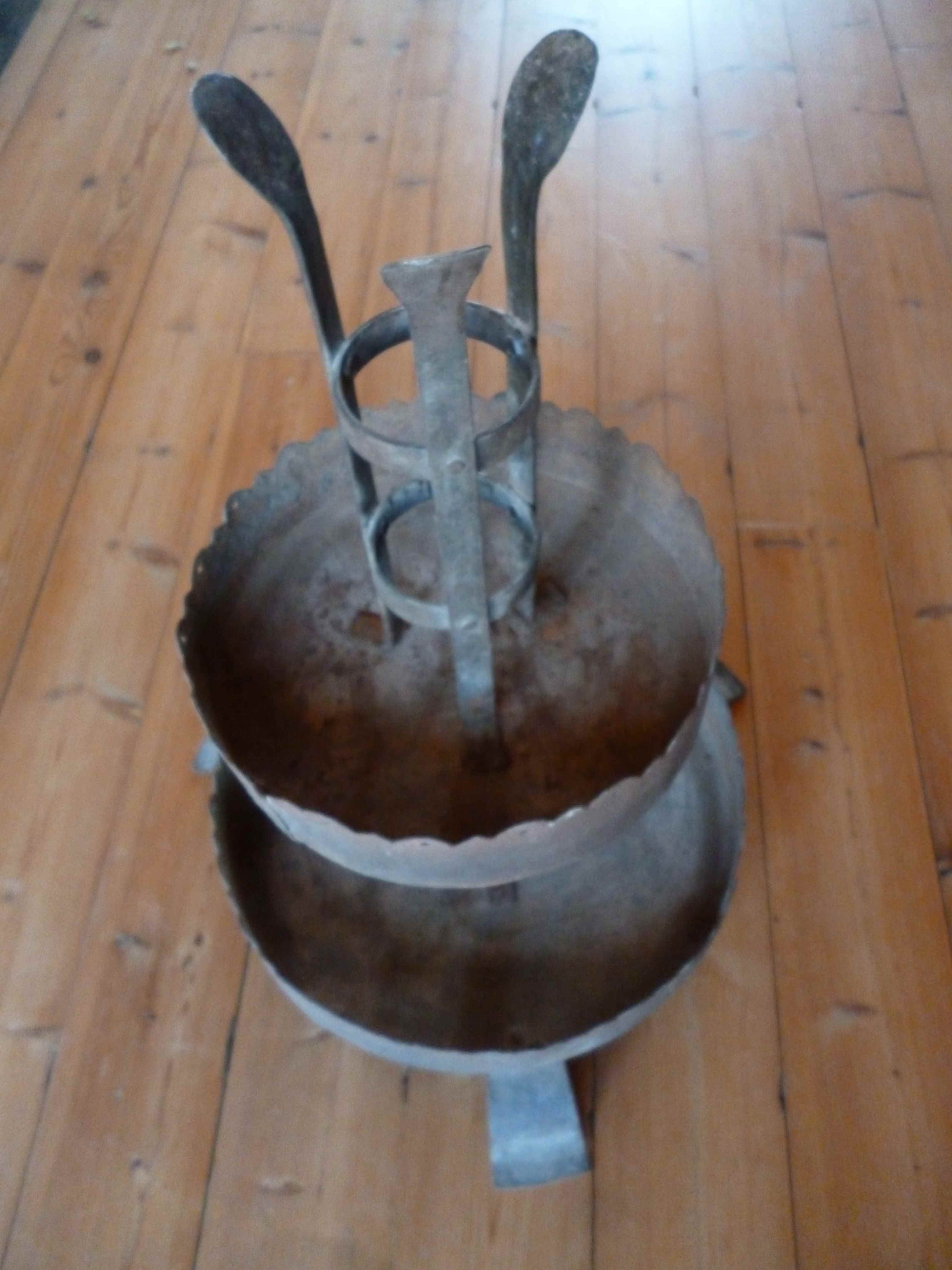 Hachero 1 velón REF: OBJE‐0004 ART: Hacheros de 1 velón DESC: Hacheros de dos pisos con 3 patas en Hierro y metal calado Artesanalmente. (Hay 2 ud) MED: 64 x 40 cm. PVP: 230 € unidad 390 € la Pareja Compártelo: Haz clic para compartir en X (Se abre en una ventana nueva) X Haz clic para compartir en Facebook (Se abre en una ventana nueva) Facebook Me gusta Cargando... Relacionado
