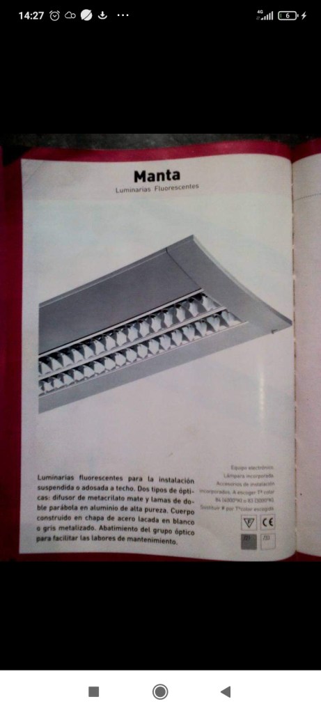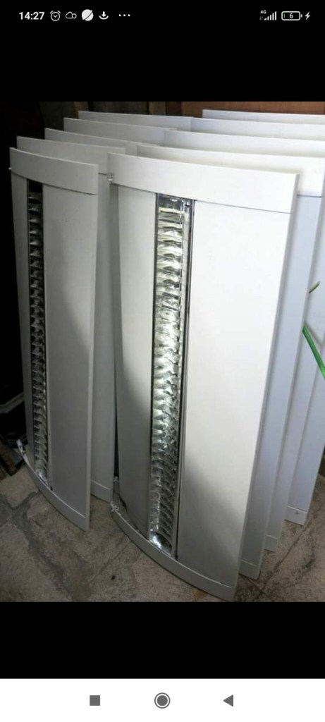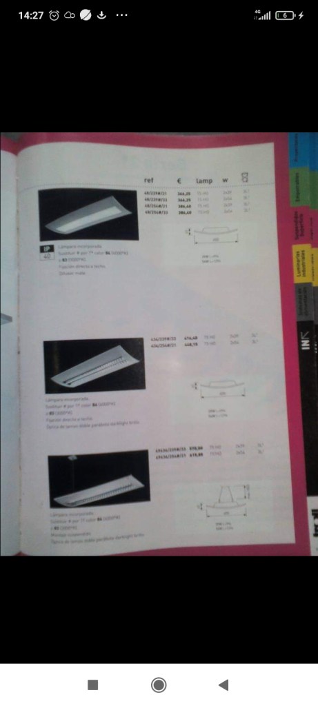 Luminarias fluorescentes para adosar al techo o colgar suspendidas.