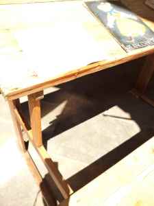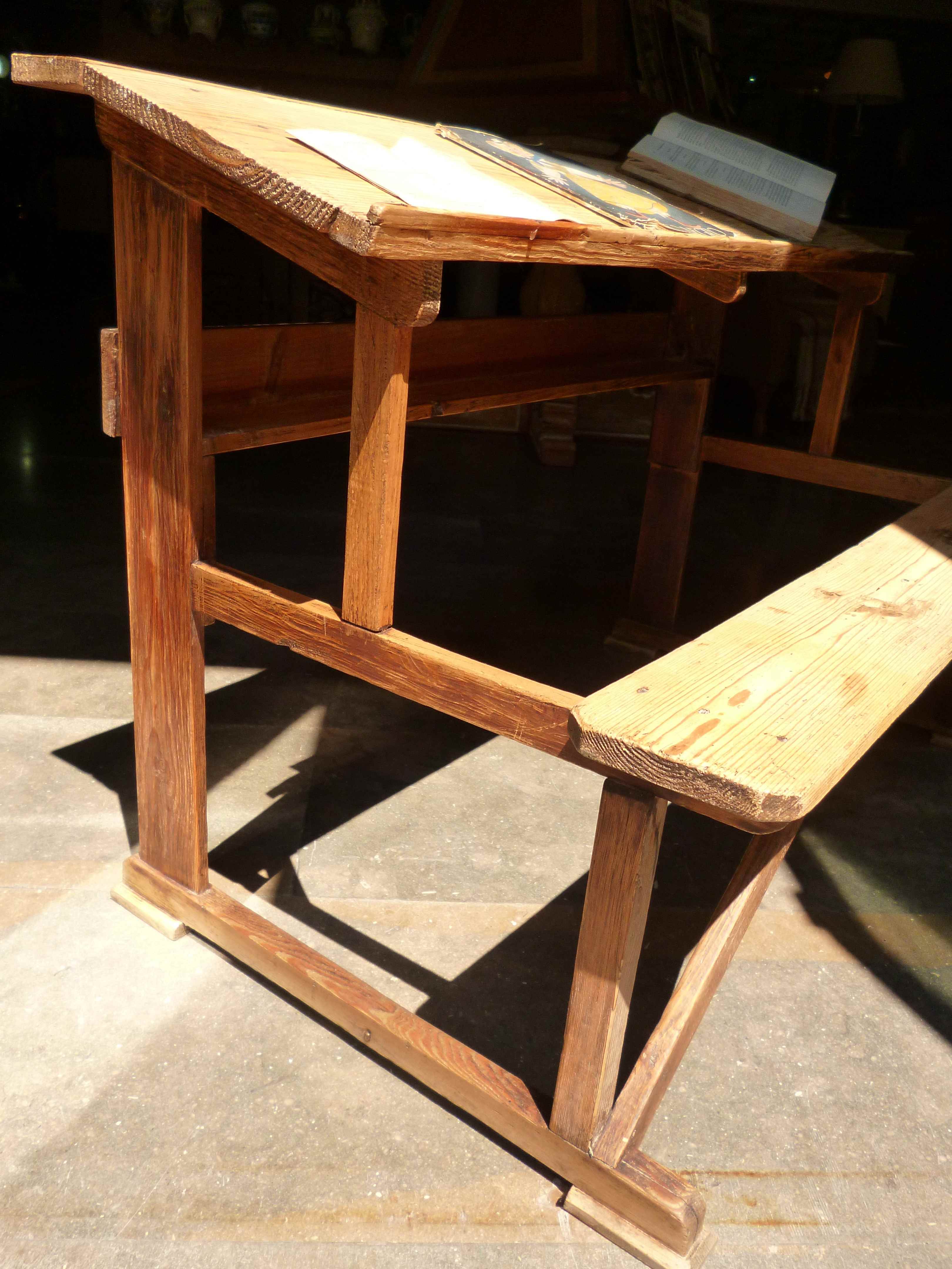 Mesa pupitre de escuela antigua, construido de forma artesanal en madera y conservada en su estado original.