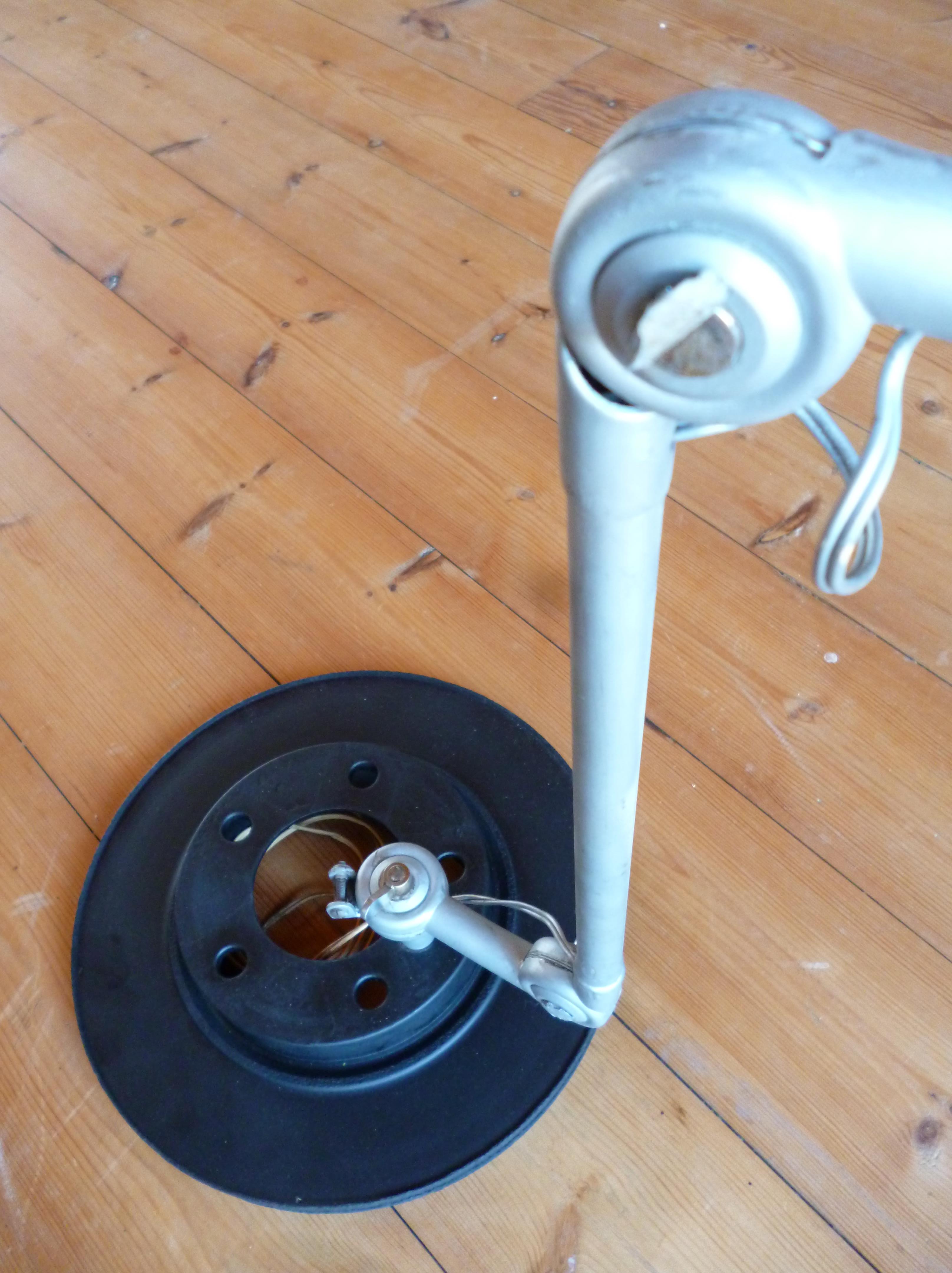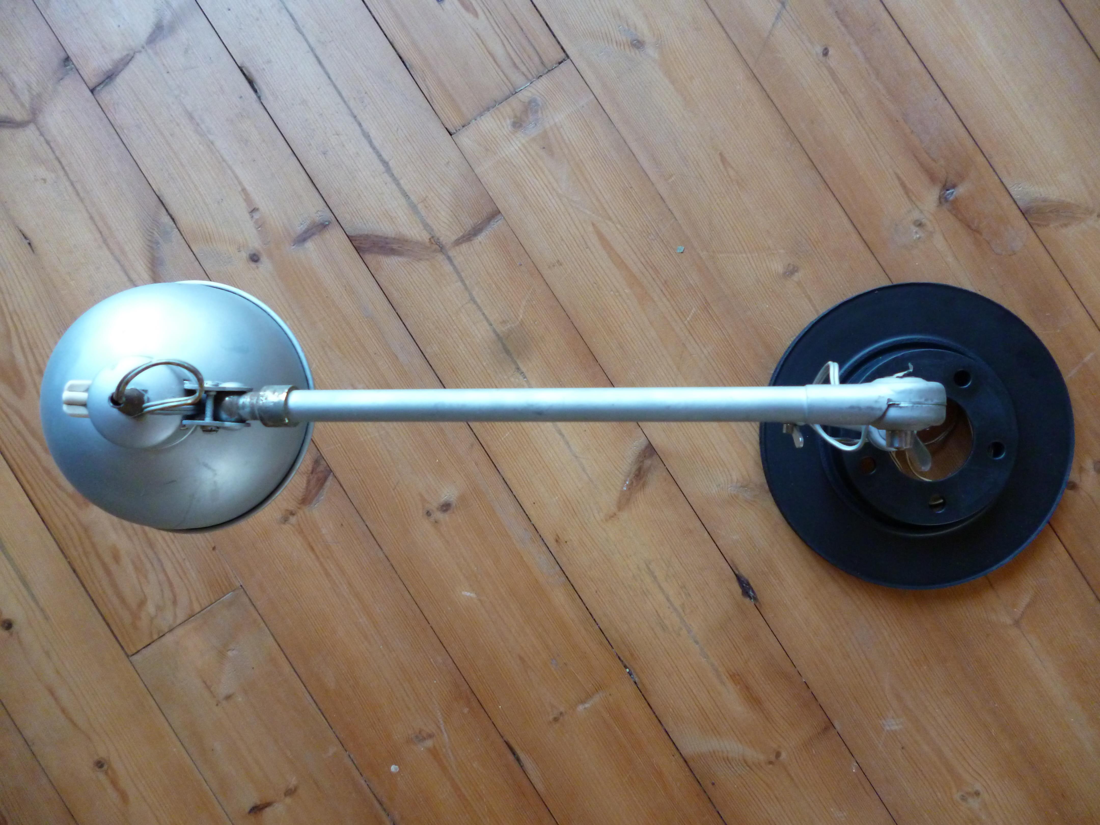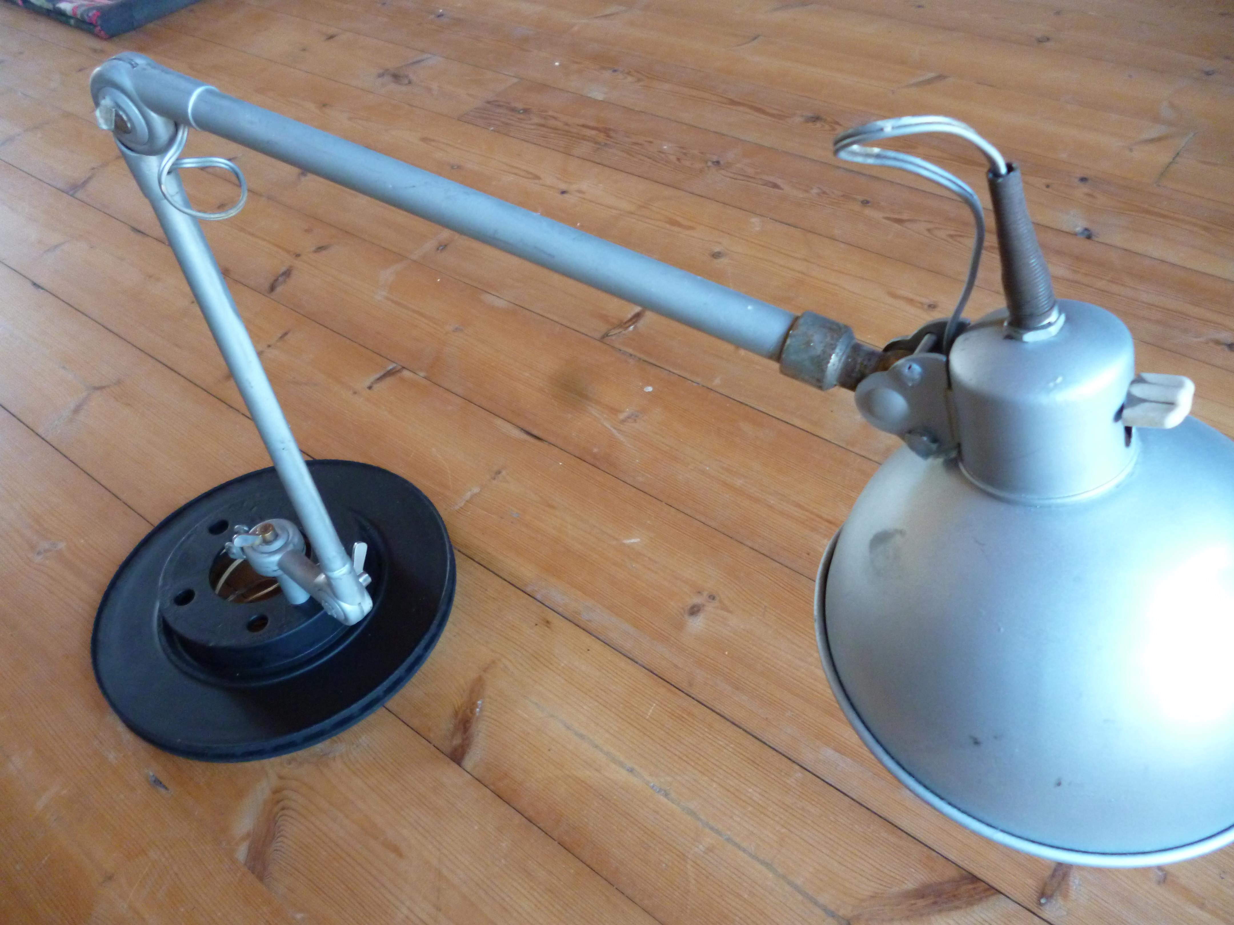 Lampara de sobremesa,JIELDE, diseño industrial, con rotulas de posición, construida en acero mate,con base de disco de freno en negro mate