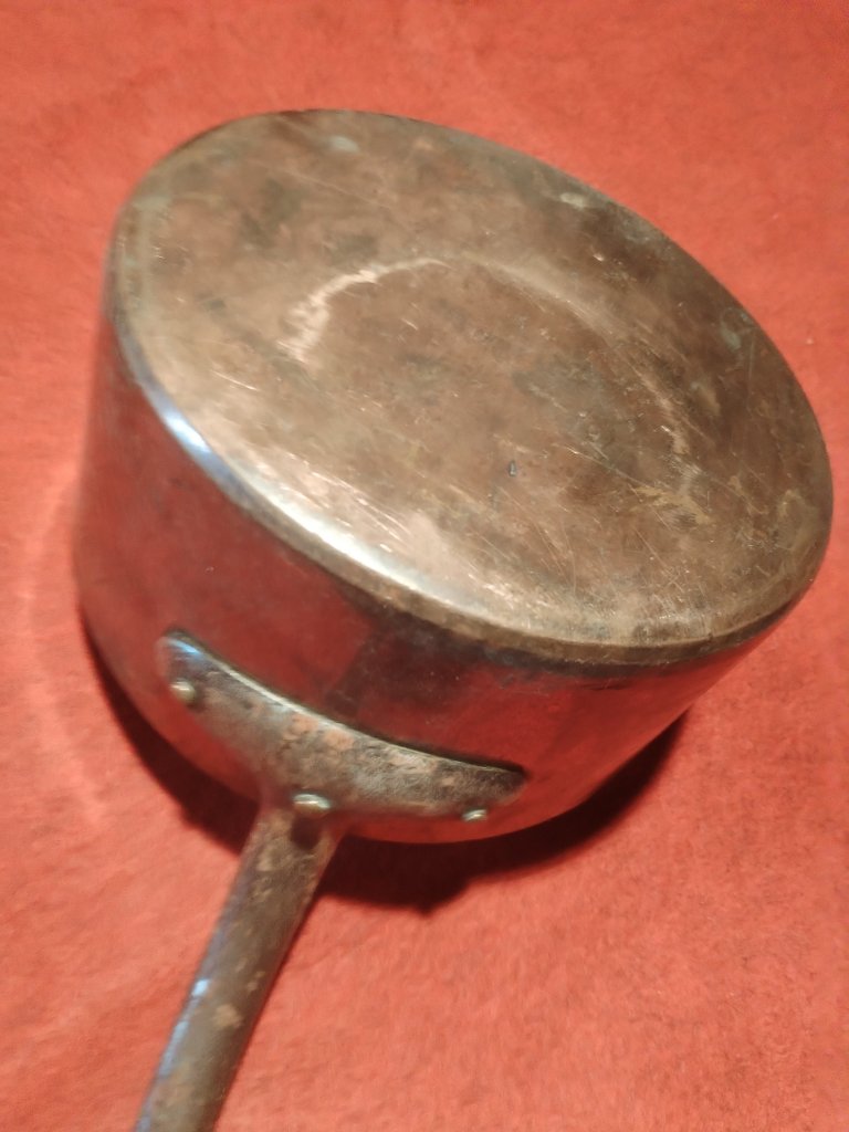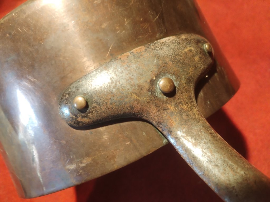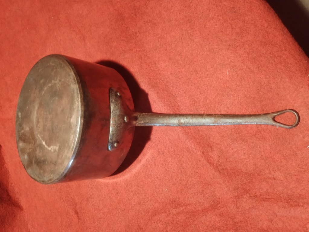 Cazuela Grande, realizada en COBRE, con asa maciza de Fundicion con colgador,