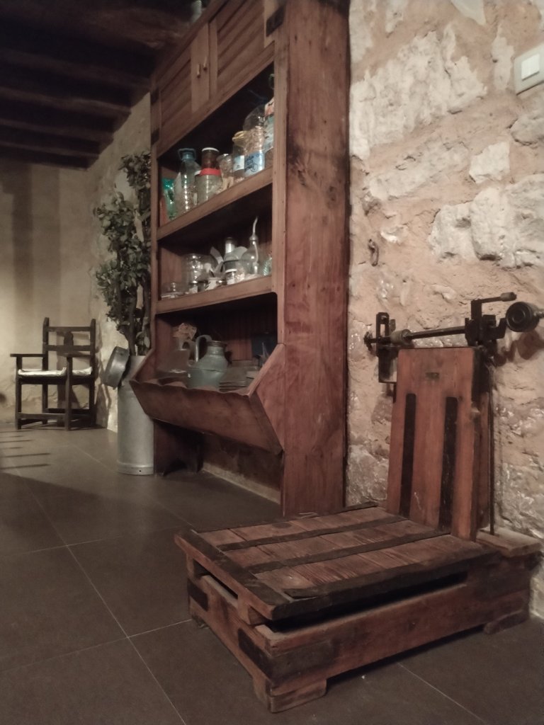 Mueble cantarera antiguo, de madera con estantes y parte baja con estantes adaptados para albergar los cántaros y aceiteras.