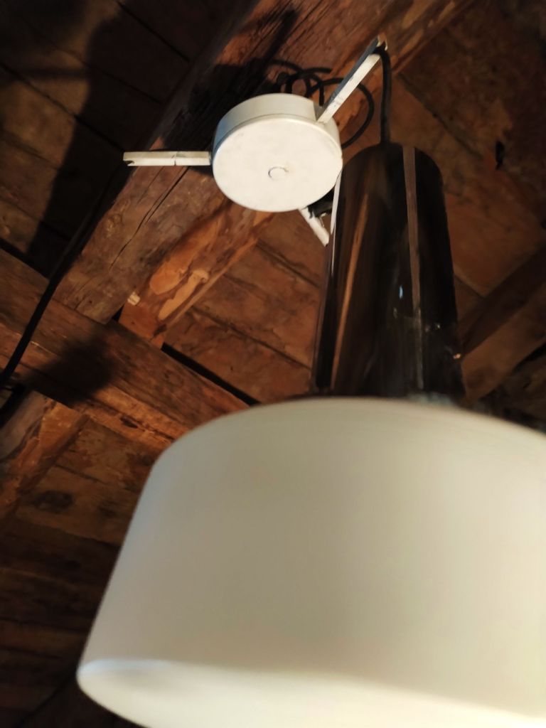 Lámpara colgante con tres cables extensibles, a la altura que se desee.