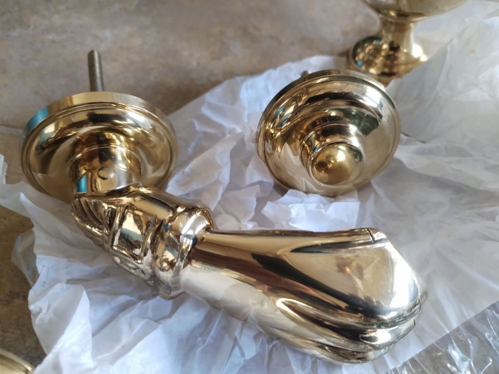 Llamadores pulsadores tiradores y bolones realizados en fundición de Latón pulido y barnizado.