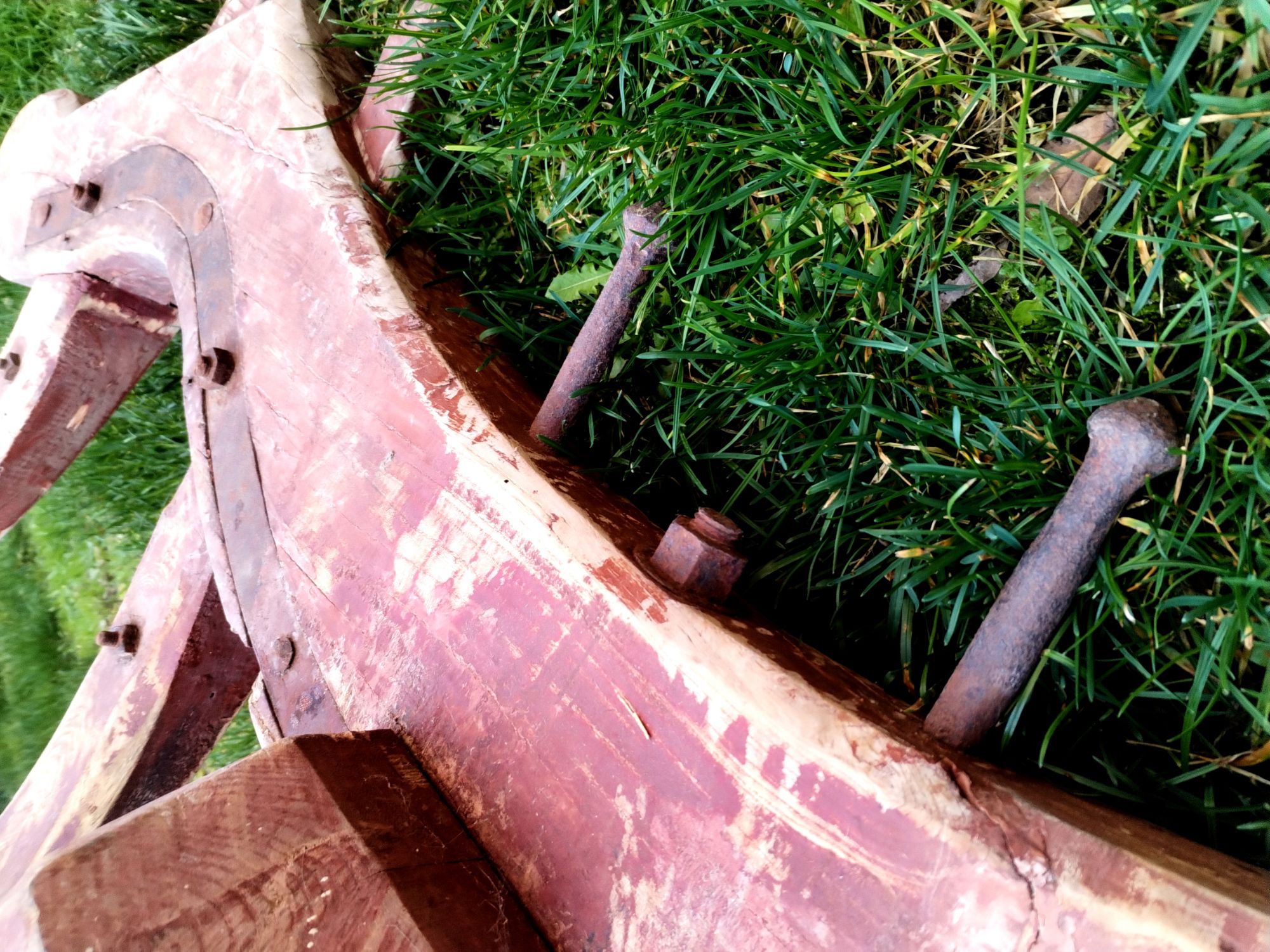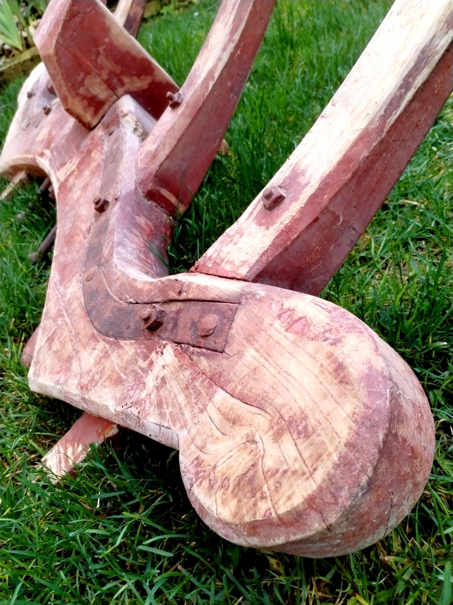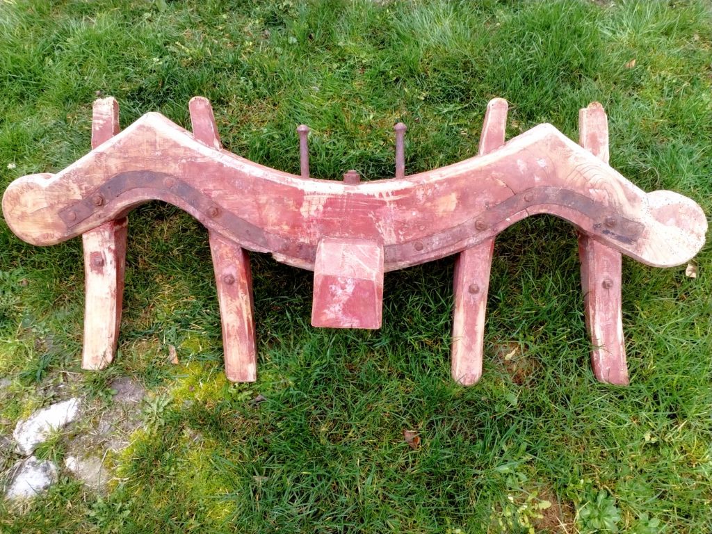 Yugo doble de bueyes construido en madera maciza, con piezas de fundición artesanal e hierro.