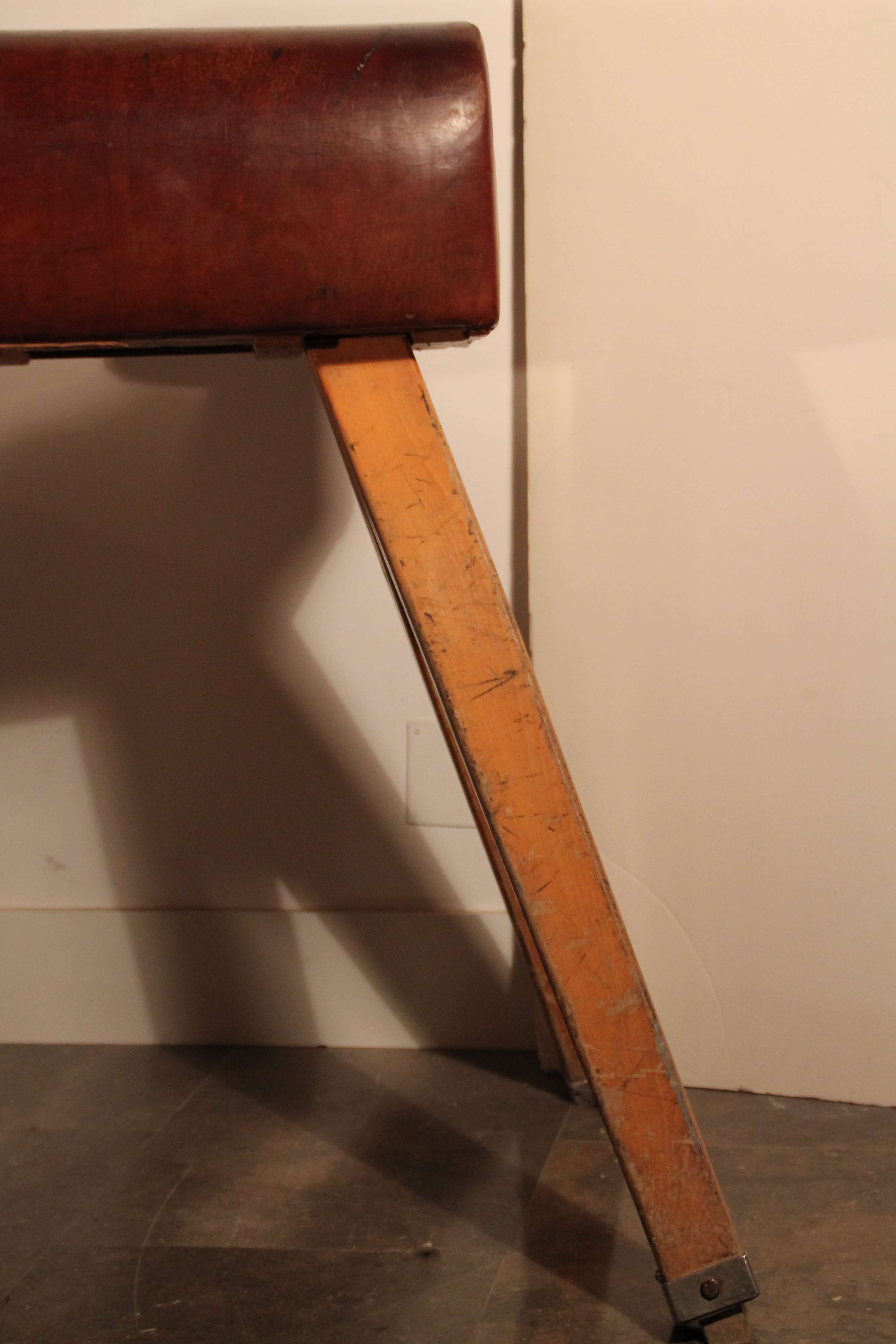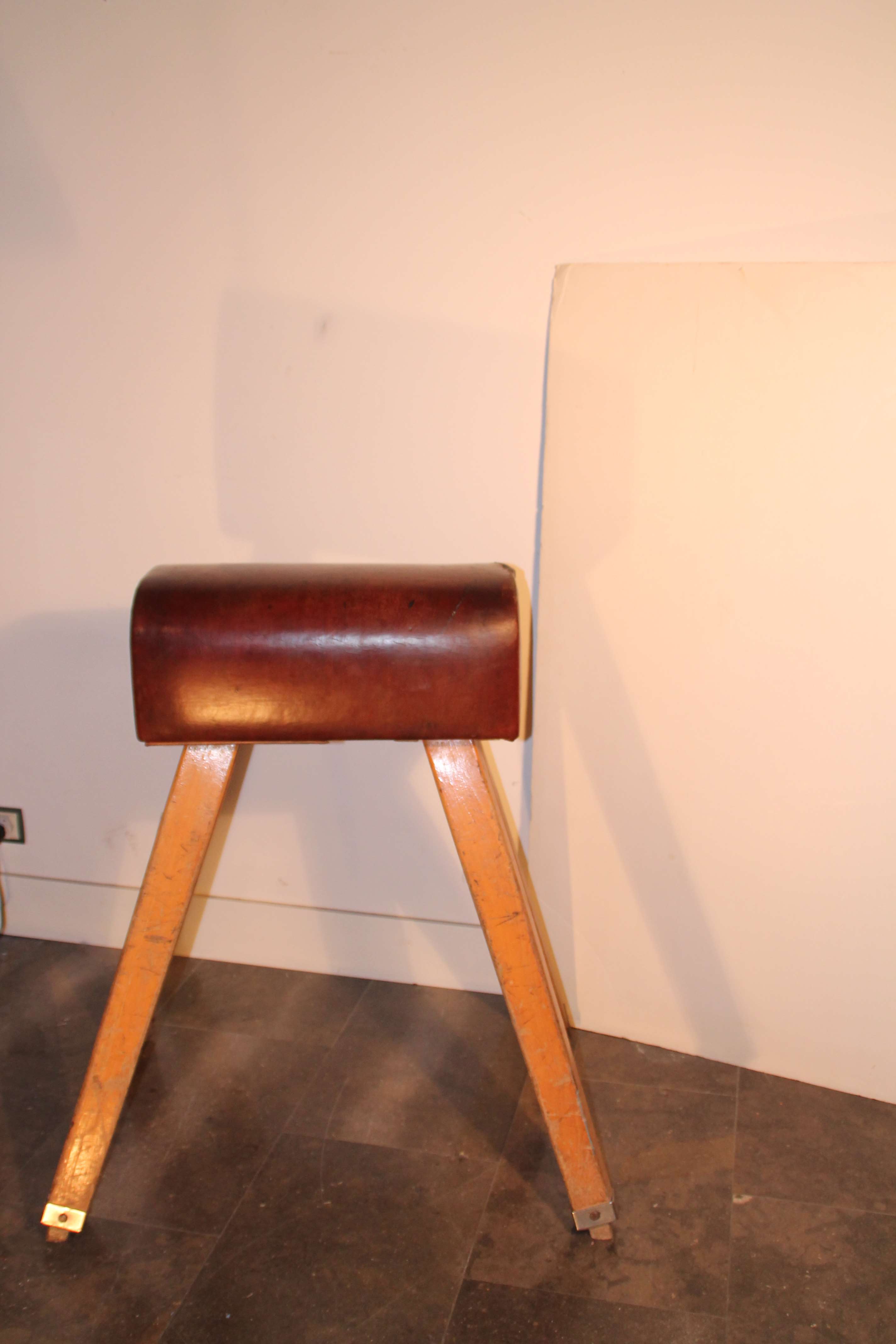 Potro gimnasio Vintage. Años 60/70. Tapizado en Pieñ super-Gruesa espesorada, cosida con tachuelas,