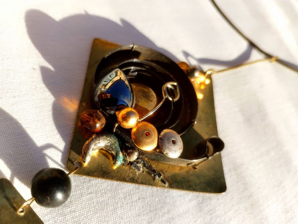 Colgante Artistico Art Decó Colgante artístico ART DECÓ realizado sobre base de latón con acero plata latón y ágatas Cuelga unos 20 cmt. 186€ Compártelo: Haz clic para compartir en X (Se abre en una ventana nueva) X Haz clic para compartir en Facebook (Se abre en una ventana nueva) Facebook Me gusta Cargando... Relacionado