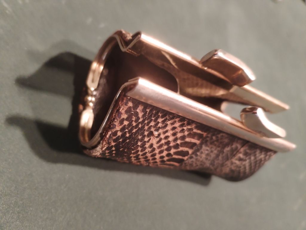 Bolsito portaobjetos, de Piel Bolsito pequeño de piel portaobjetos con estructura plateada y clip de cierre. Medb 9 cmt. 25 € Compártelo: Haz clic para compartir en X (Se abre en una ventana nueva) X Haz clic para compartir en Facebook (Se abre en una ventana nueva) Facebook Me gusta Cargando... Relacionado