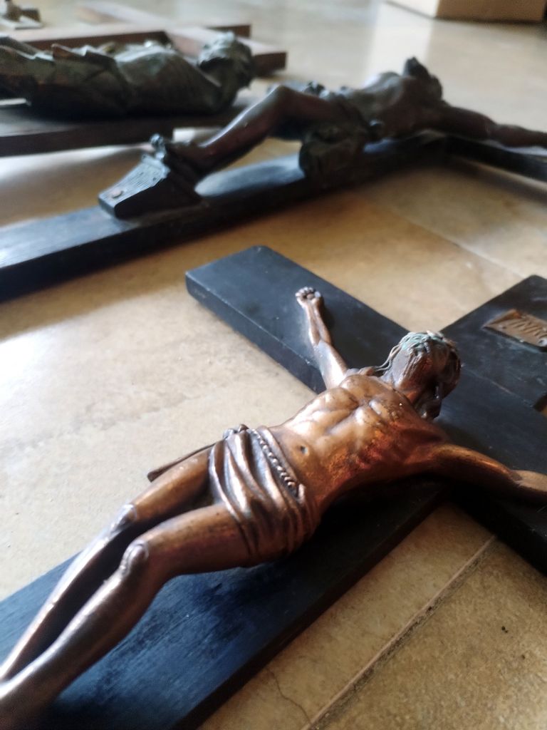 Colecciones de cruces cristos y objetos religiosos singulares y antiguos.