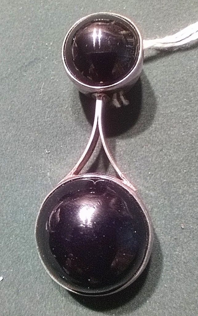 Dos piezas de ágata negra en cabujón sobre soporte de plata.