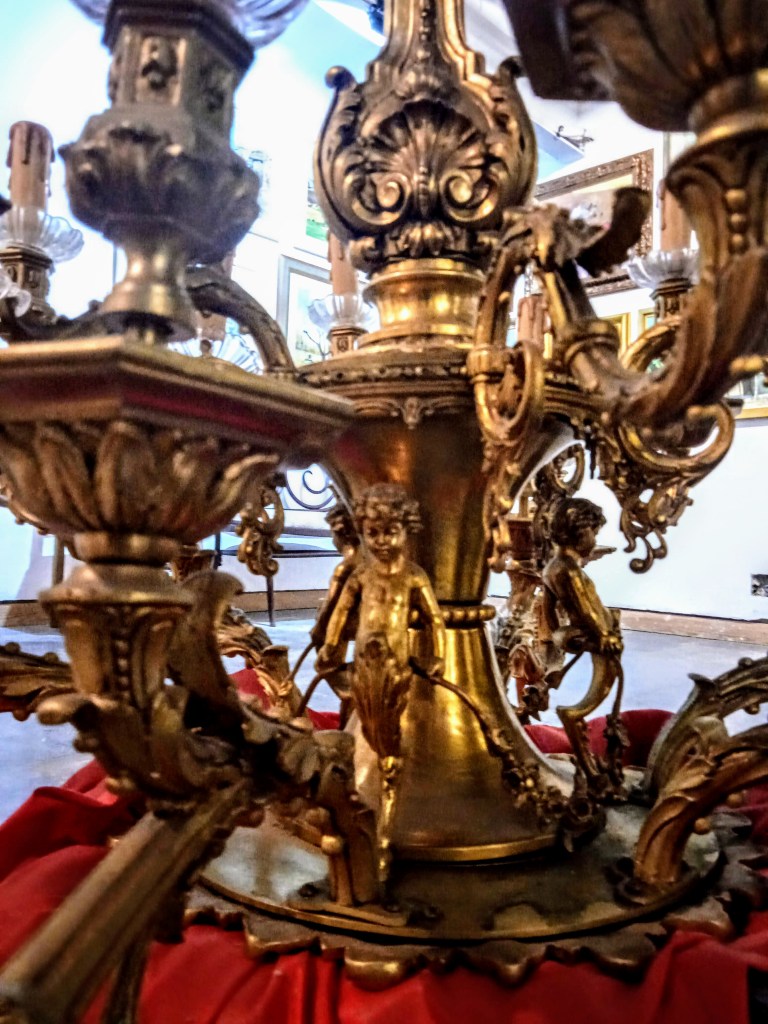 Lámpara de fundición maciza de bronce, con acabado en Patina francesa