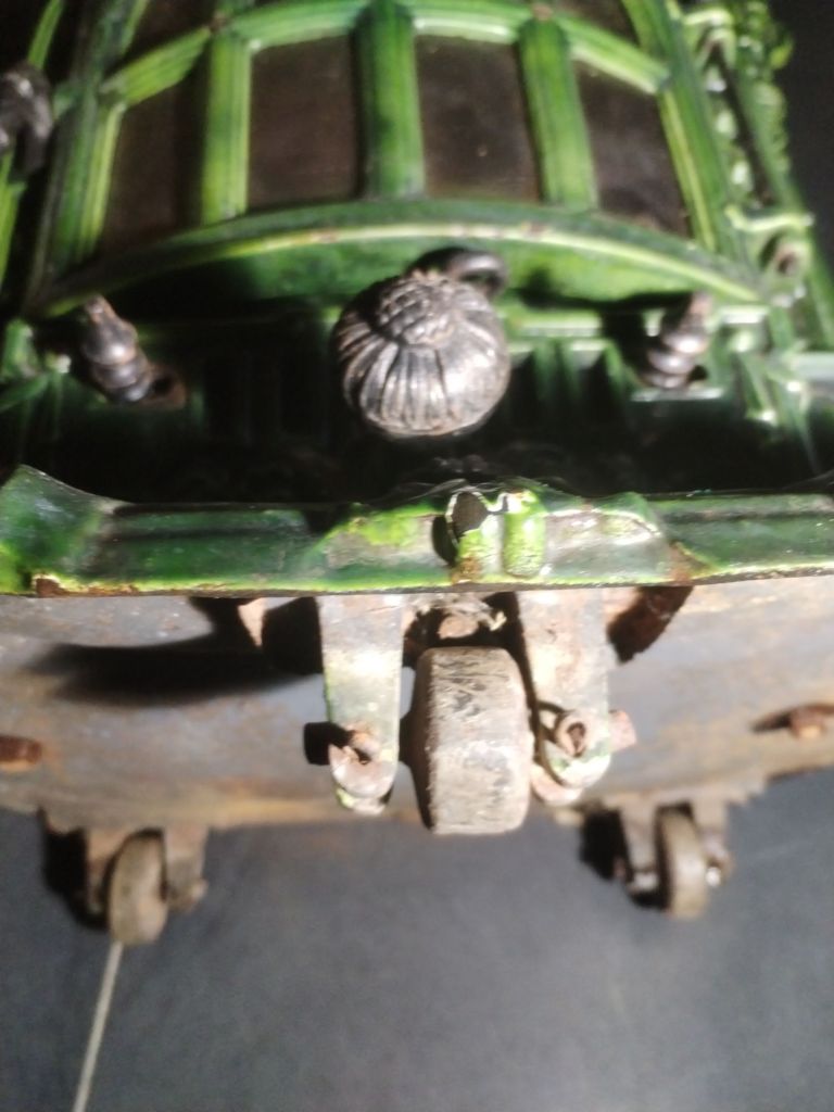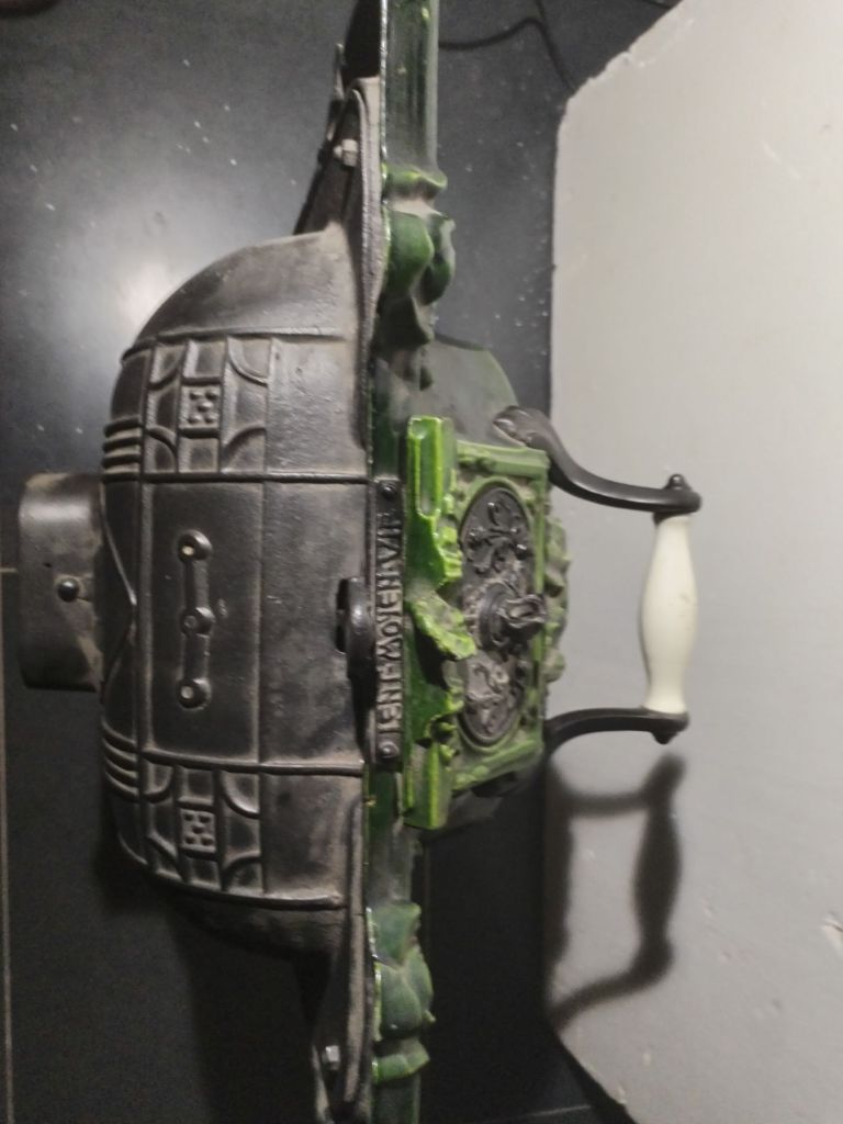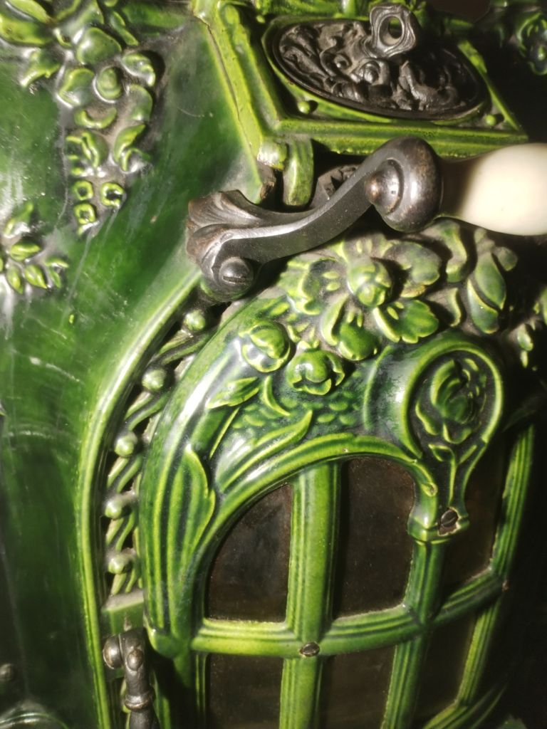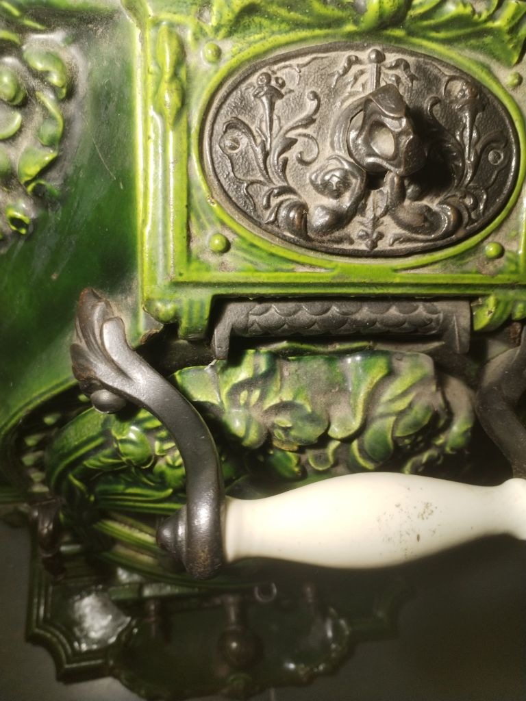 Estufa antigua de fundición, con puerta accesible al hogar, tirador de porcelana Hueso, cajón de cenizas, tiro de corriente, 3 ruedas para trasladarla, Se conserva en perfecto estado, con muy poco uso.