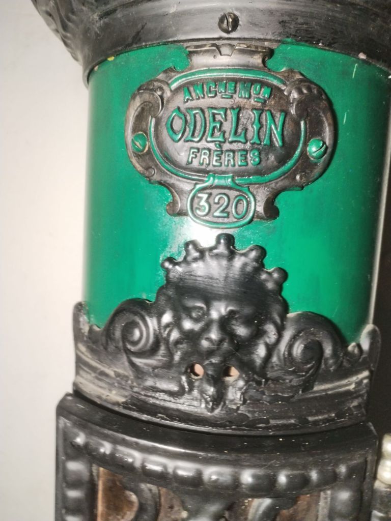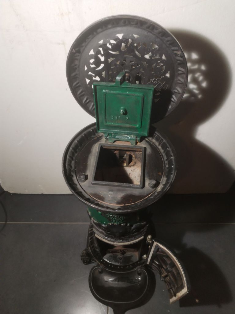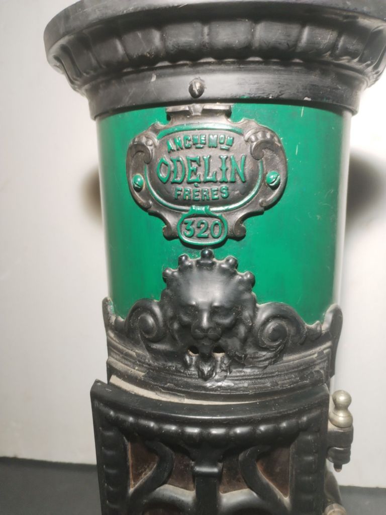 ESTUFA SALAMANDRA realizada en Francia, en fundición de hierro colado y cerámica esmaltada.
