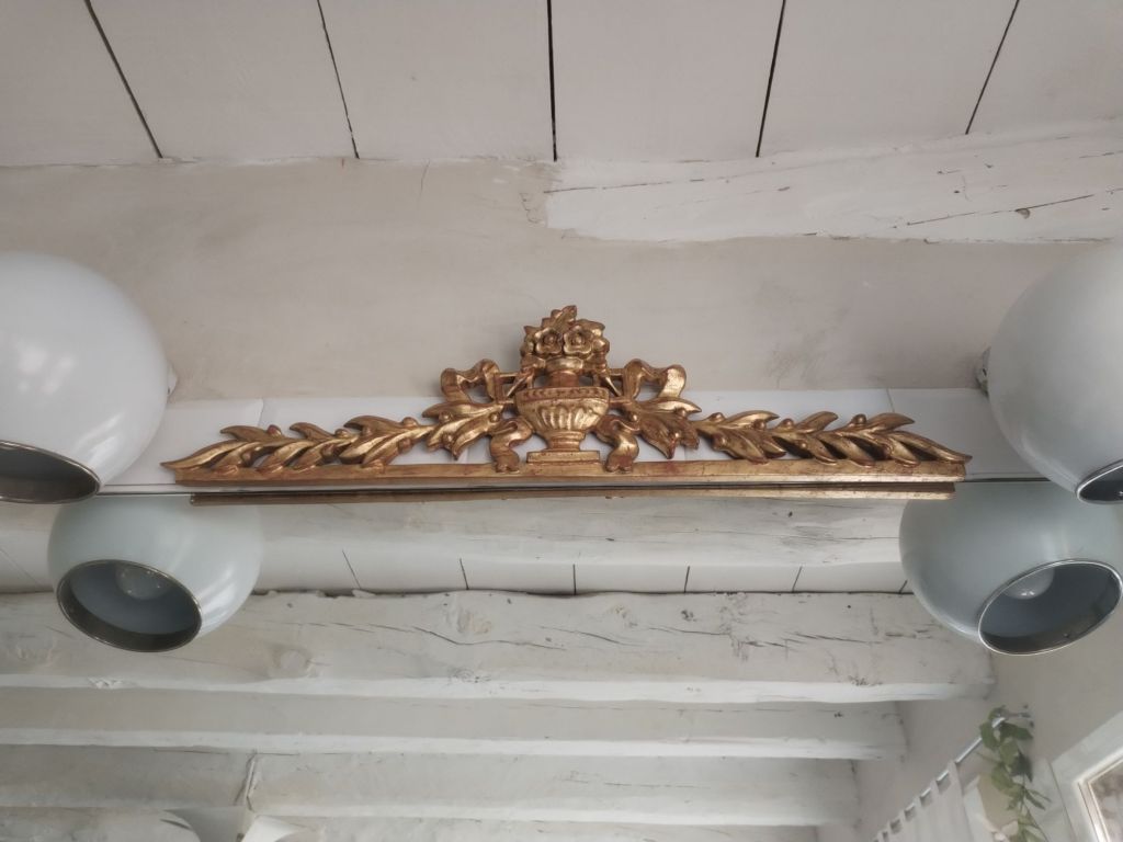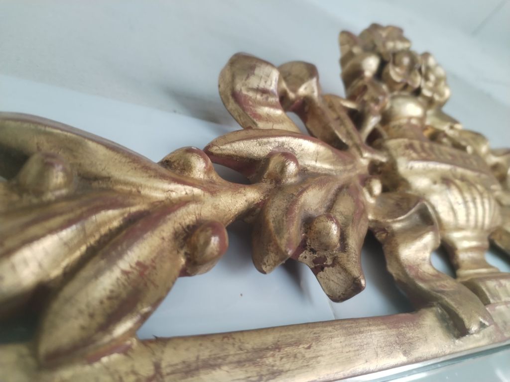 Cornucopia tallada Artesanalmente, en una sola pieza de madera maciza, con aplicacion de Pan de ORO.