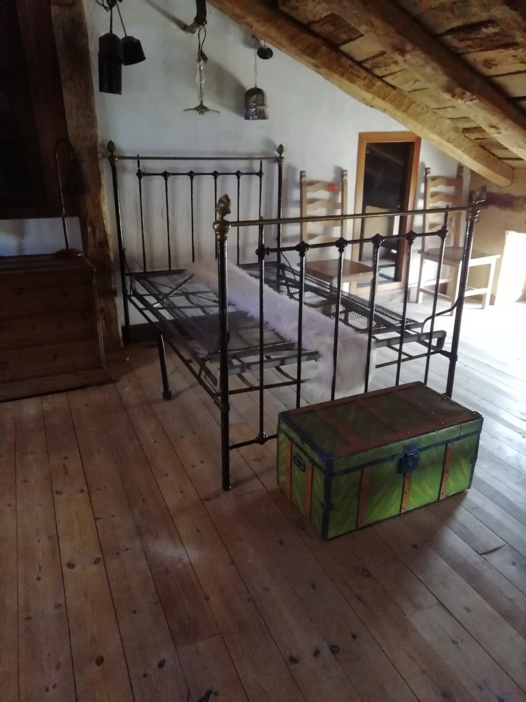 Cama antigua completa plegable, realizada en hierro y Latón con policromía pintada a mano.