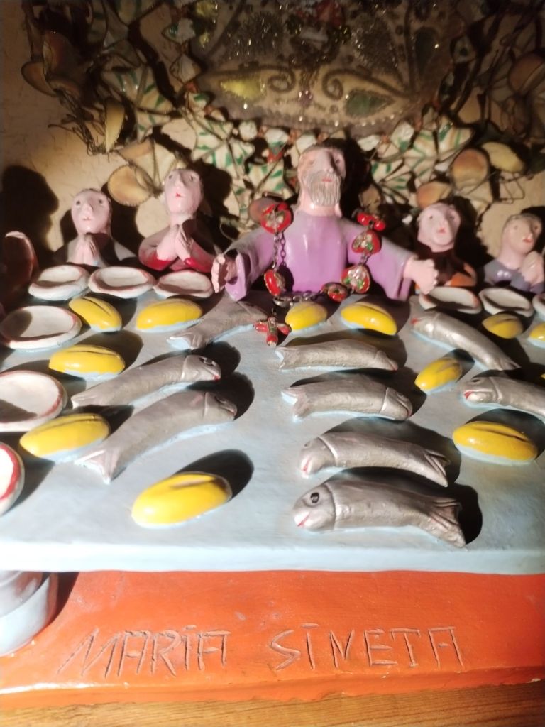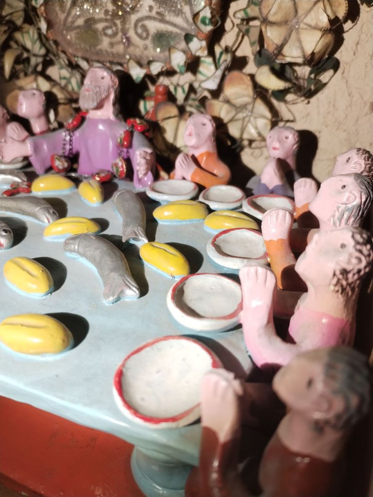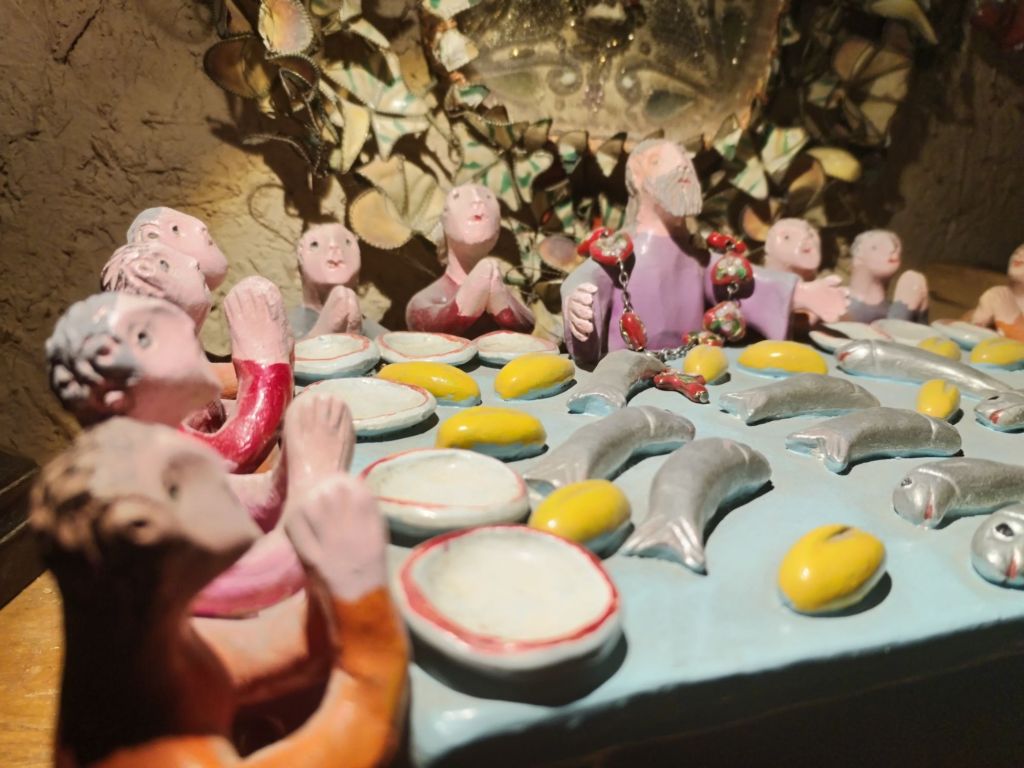 Ingeniosa y colorida escultura, que representa la escena de «la Última Cena»