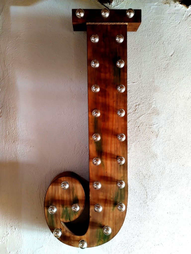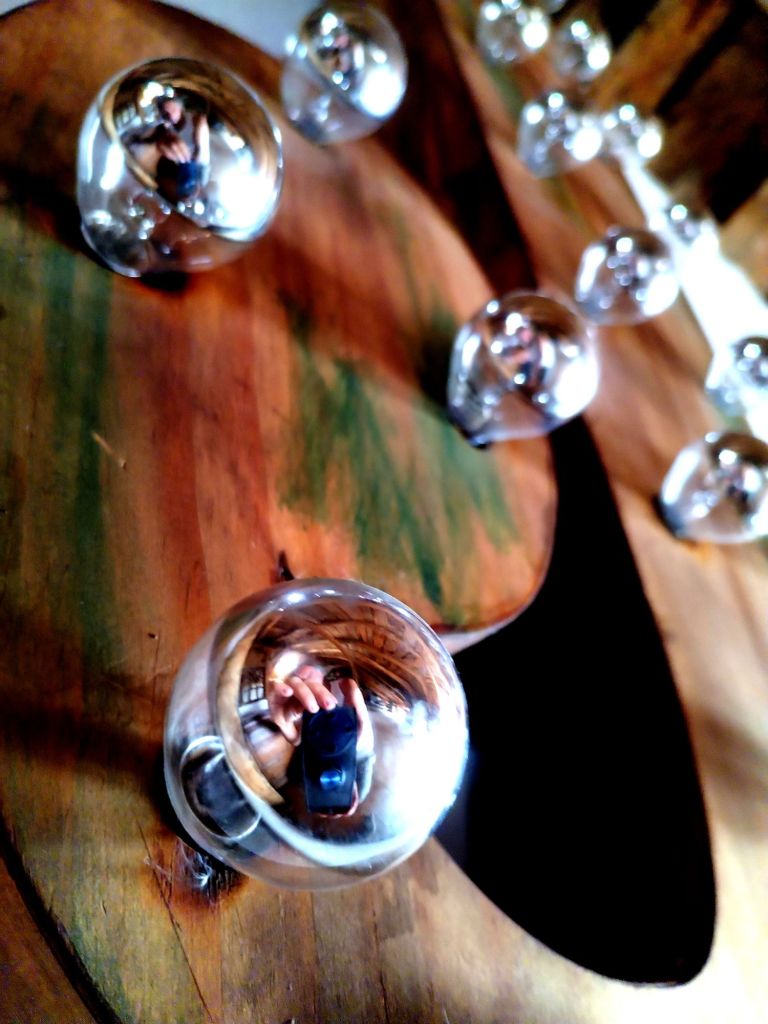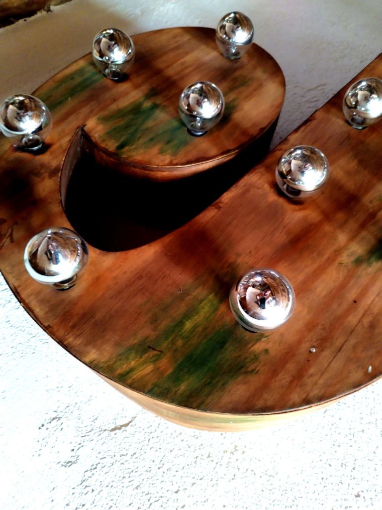 Lámpara JOTA, realizada en madera, con veinticinco bombillas cromadas, al estilo tocador camerino Glamuroso
