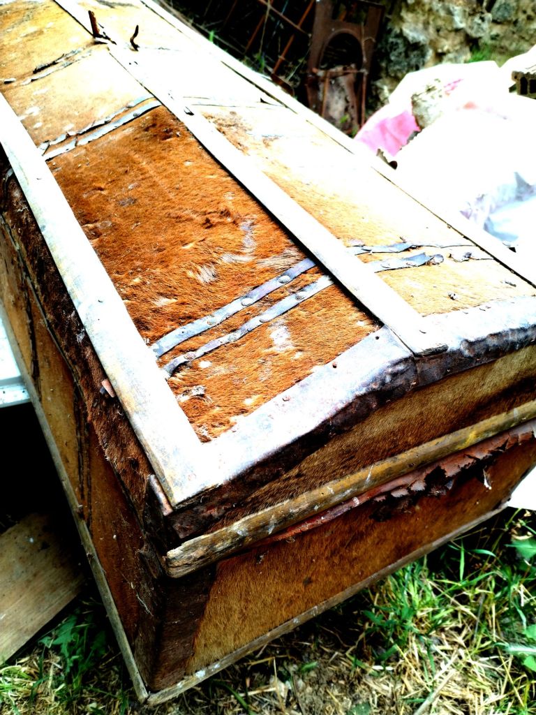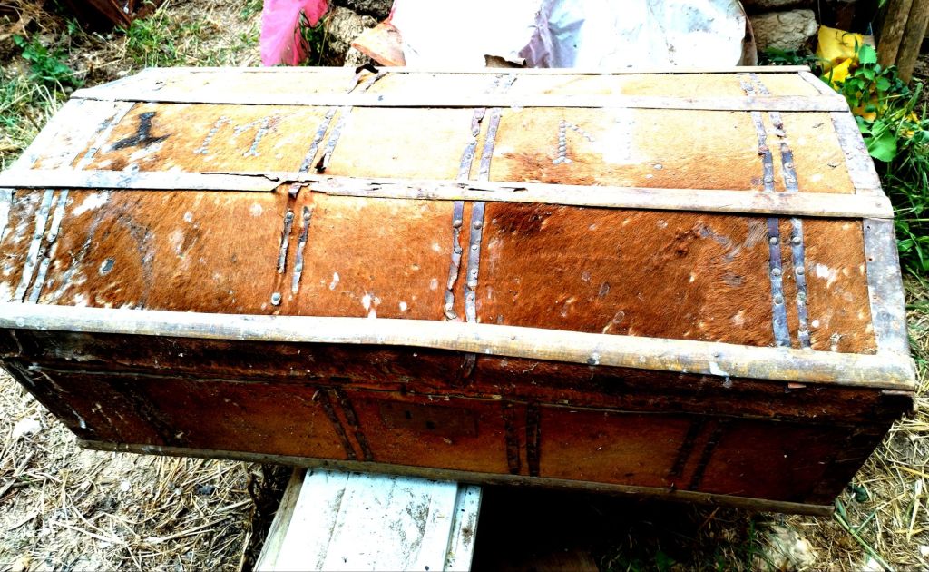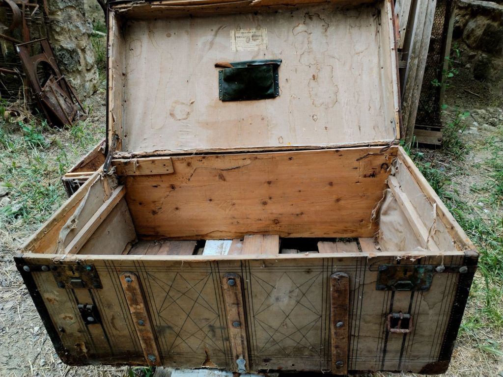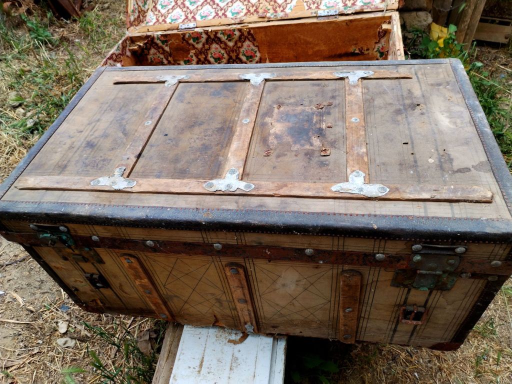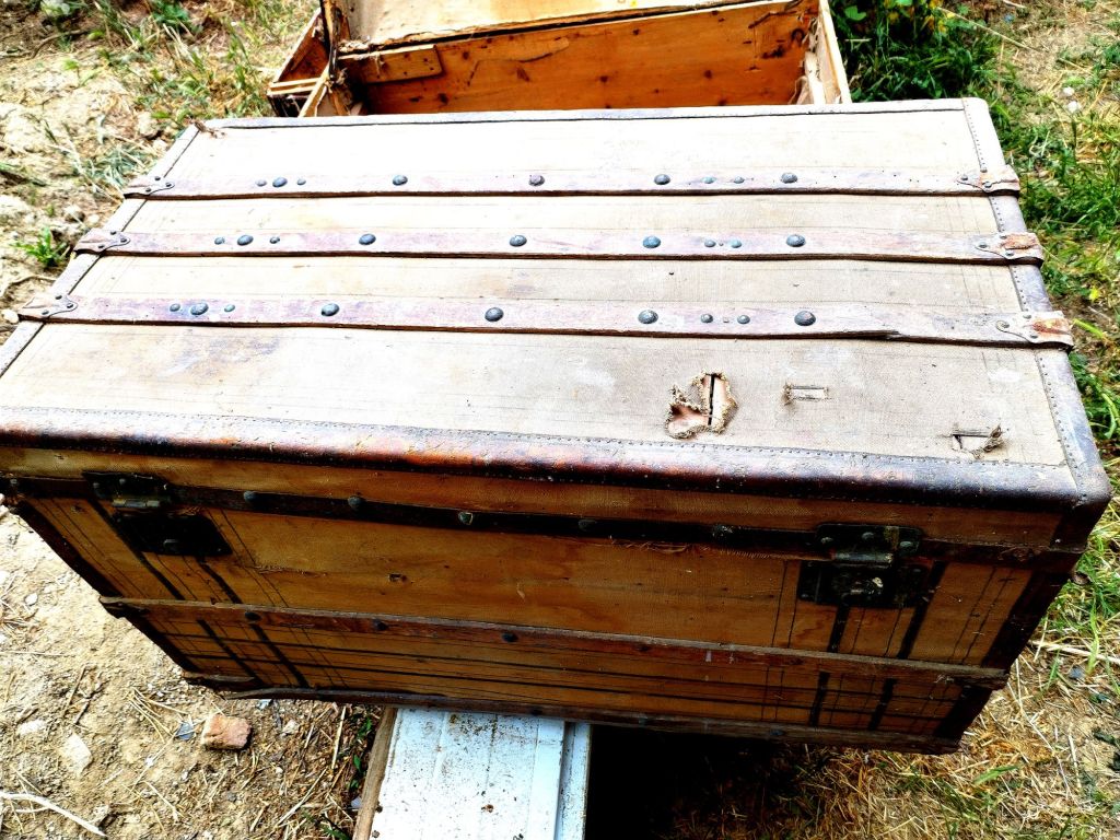 Baúles y arcas antiguas construidos en madera con piezas y estructura en chapa.