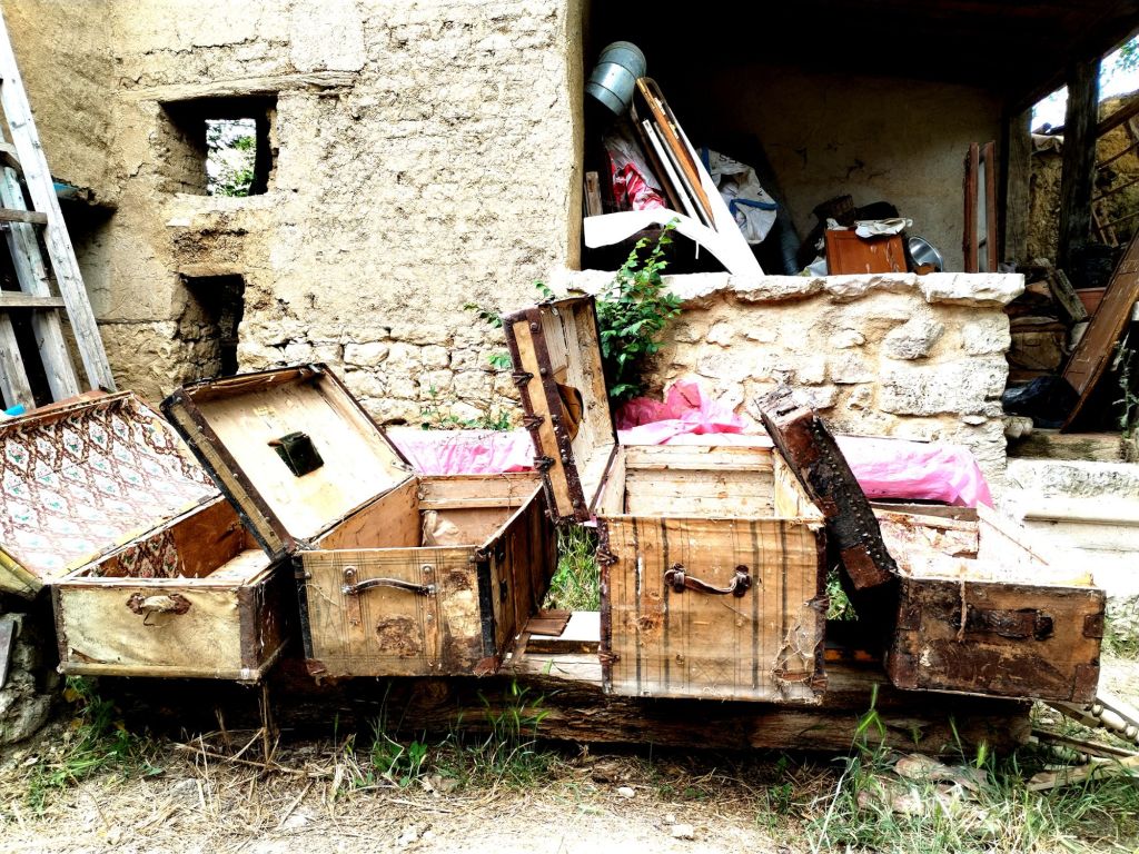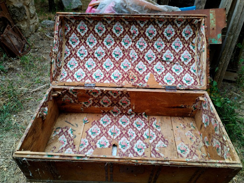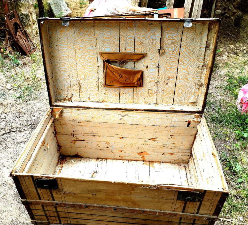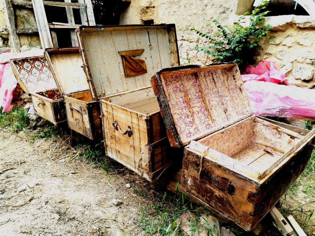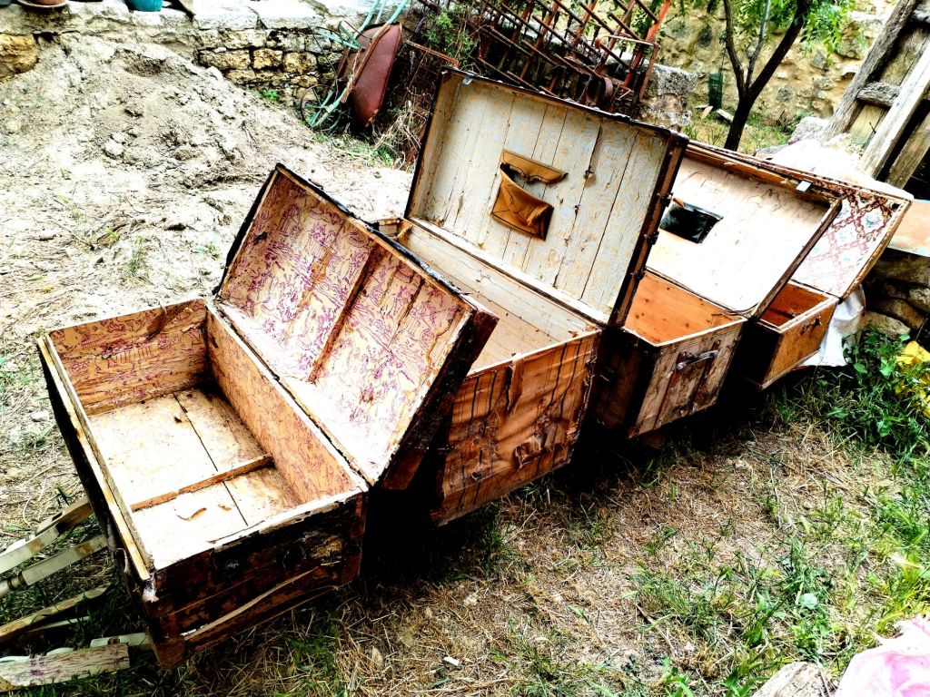 Baúles y arcas antiguas construidos en madera con piezas y estructura en chapa.