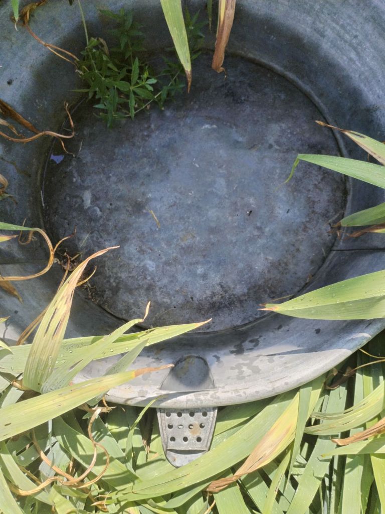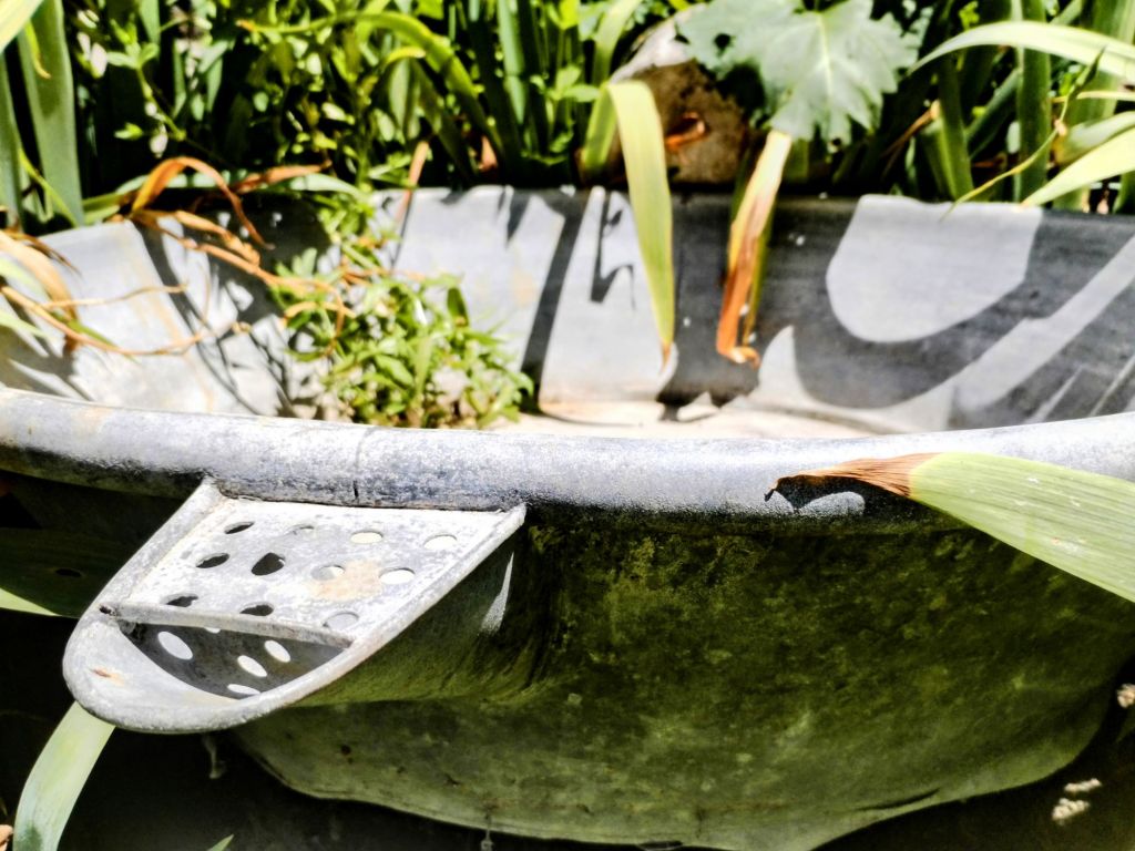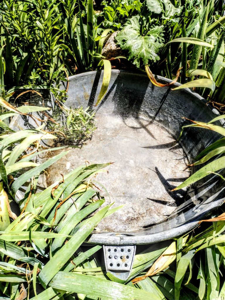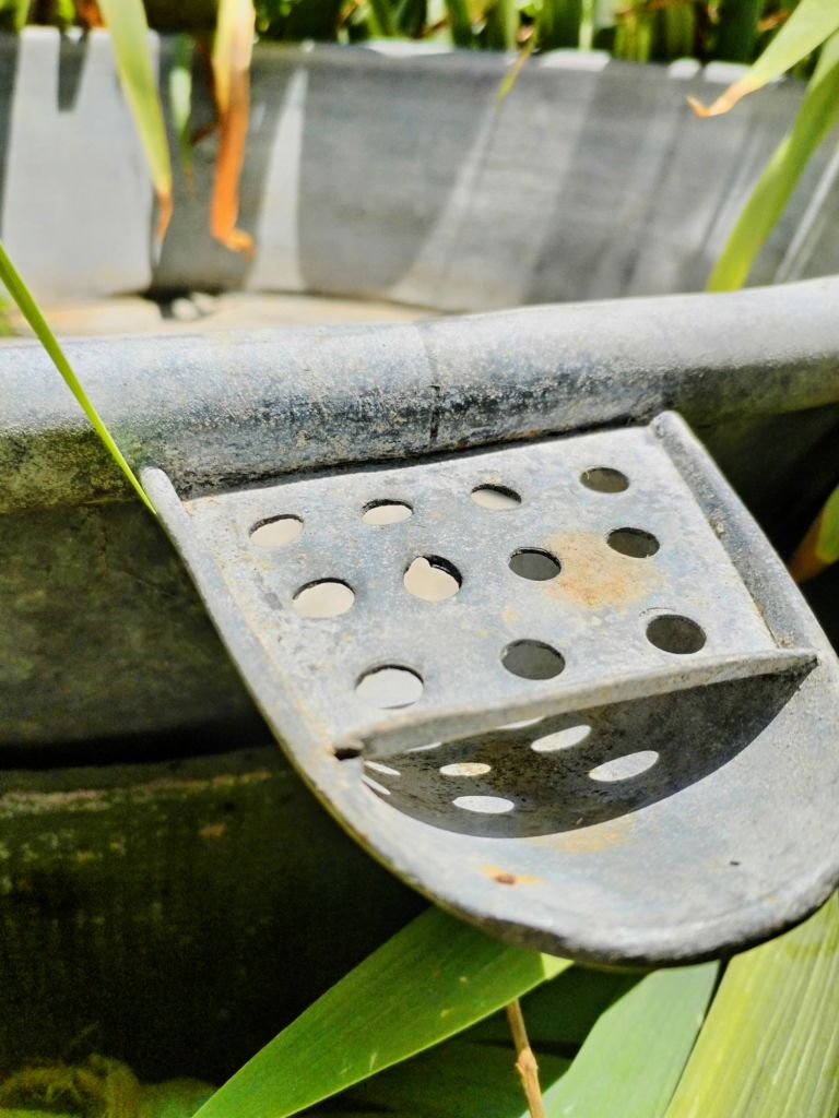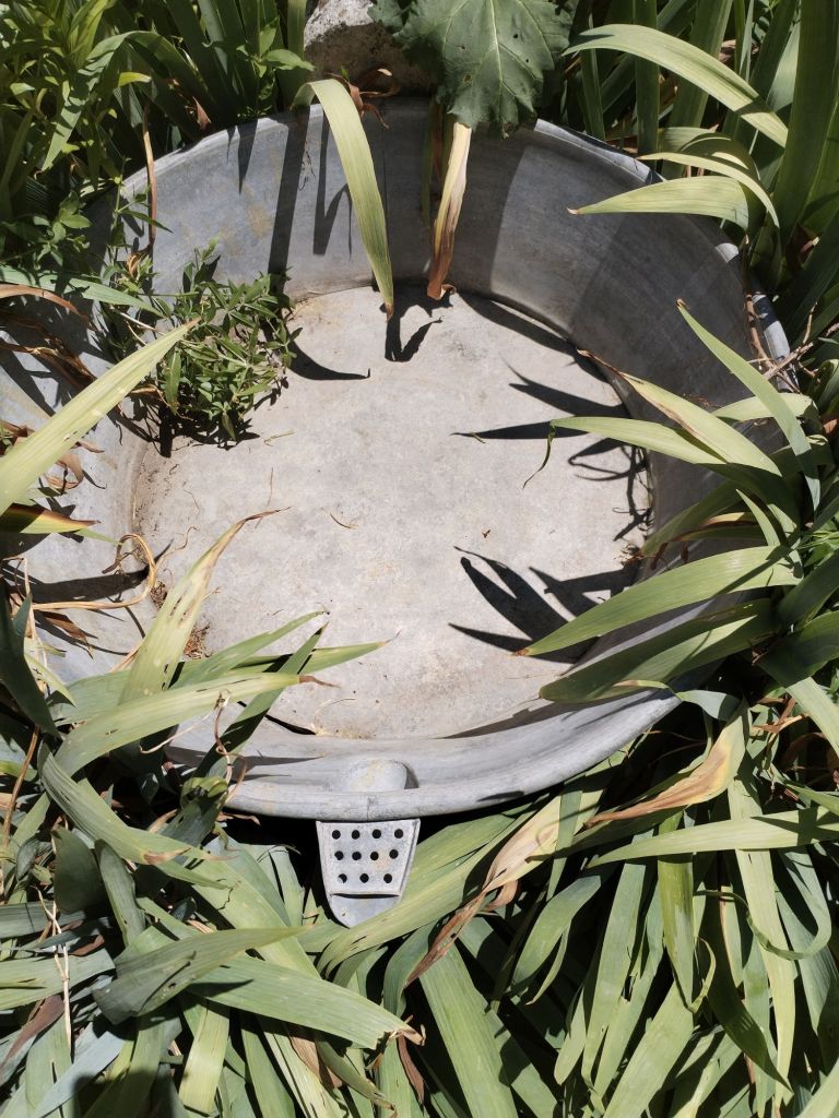 Bañera ducha antigua realizada en ZINC con desagüe de rejilla.