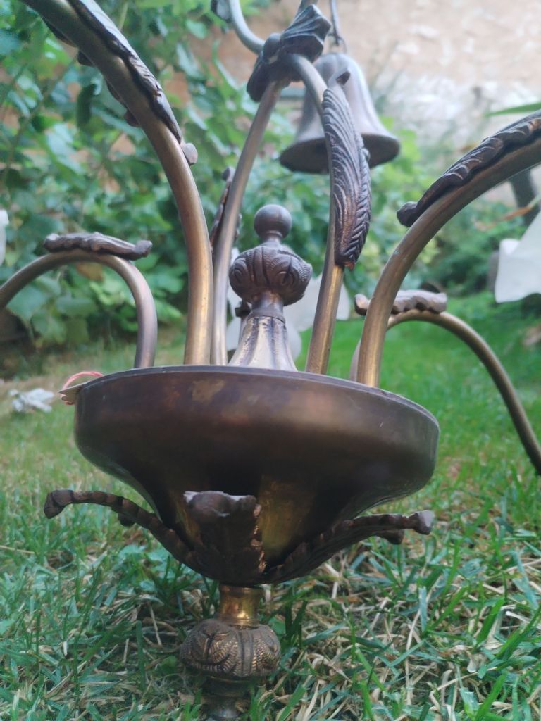 Lámpara de techo colgante con cinco tulipas de cristal.