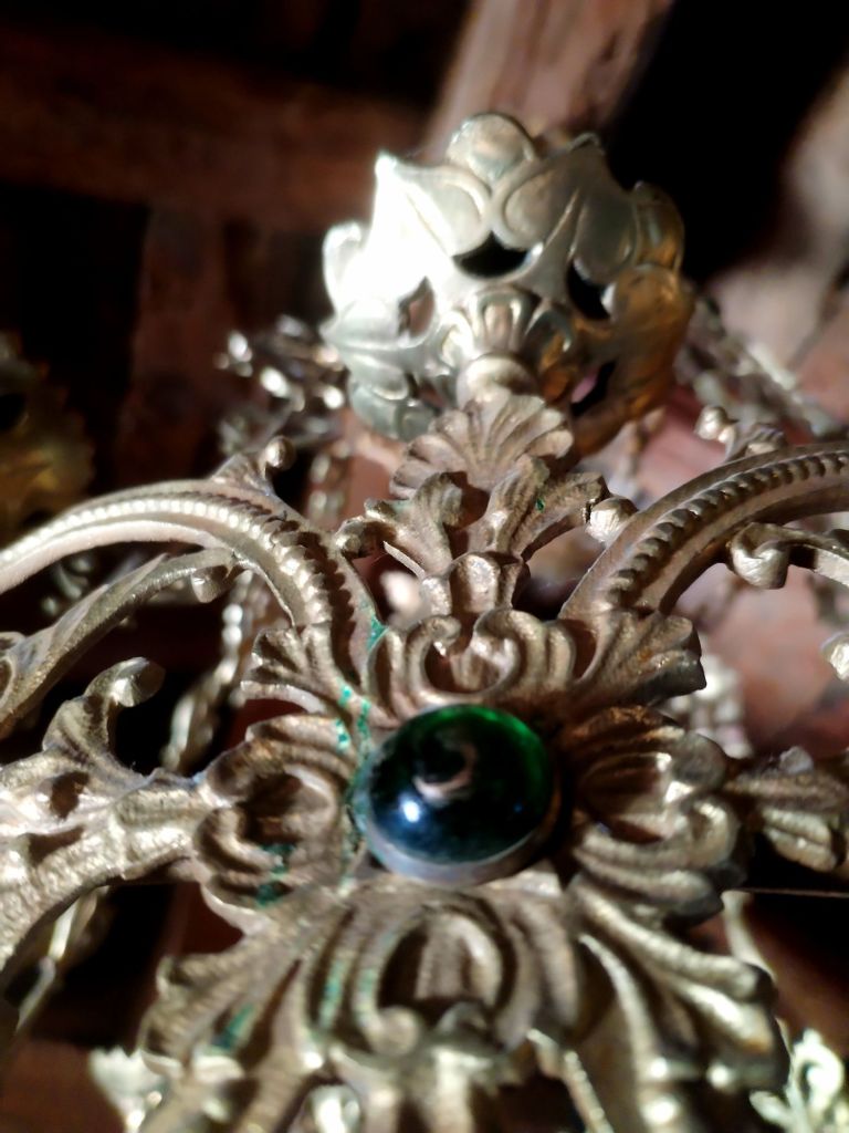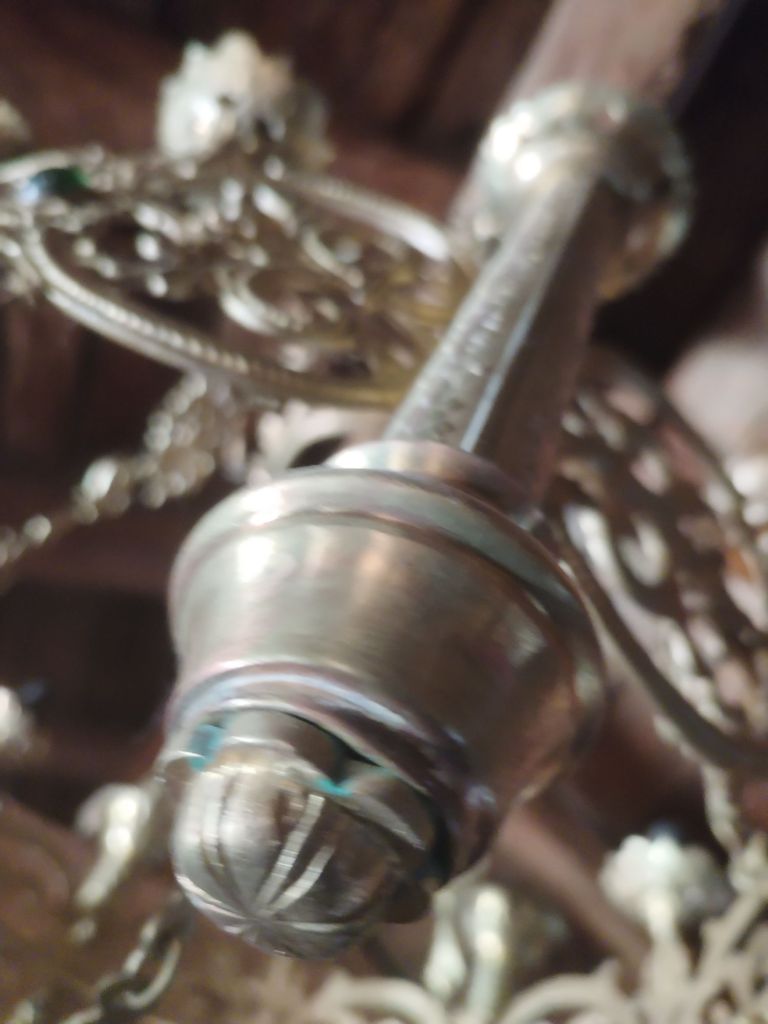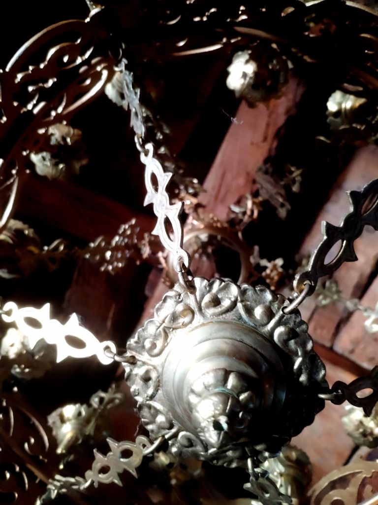 Lámpara votiva de Iglesia realizada en fundición en bronce y latón pavonado.