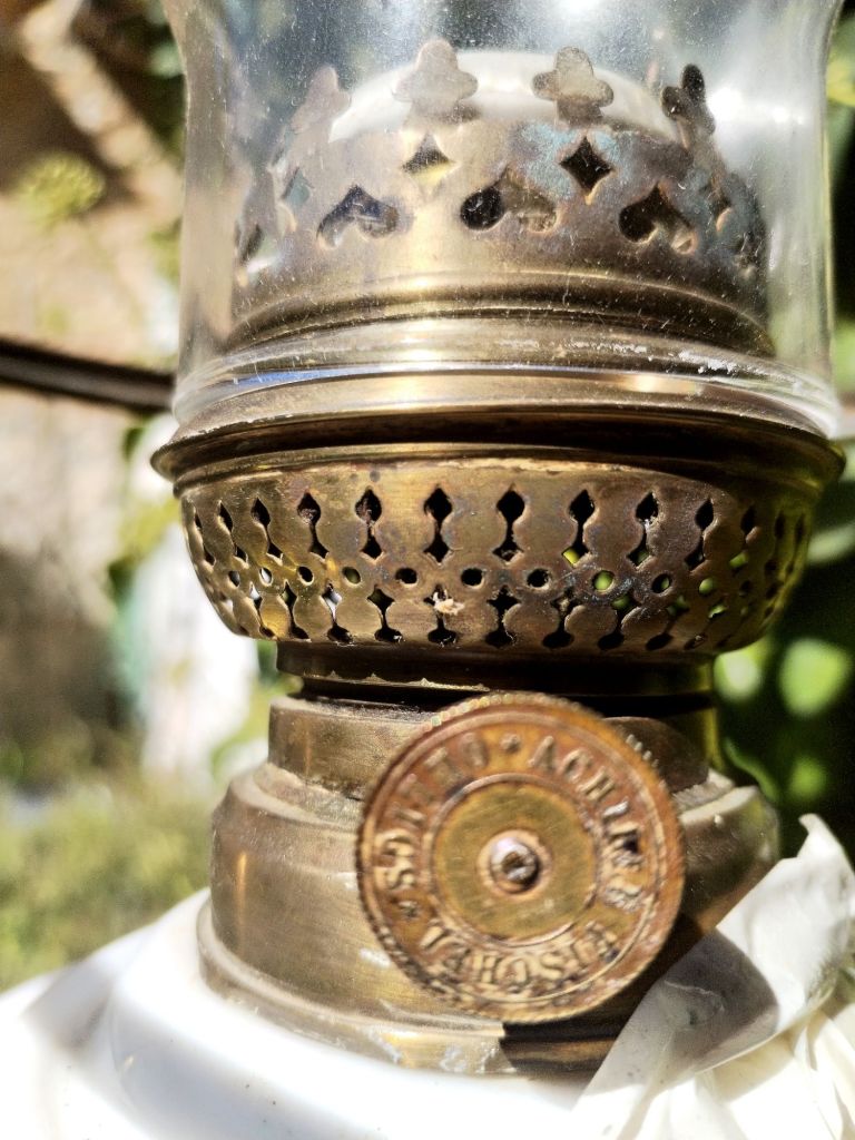 Pieza central que lleva natulipa cristal de opalina blanca y la posibilidad de un tubo de cristal quinque, transparente.