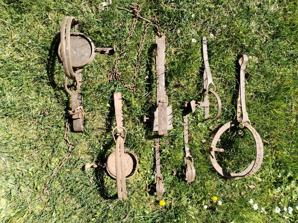Colección de siete cepos para la CAZA, realizados en hierro de forma totalmente artesanal.