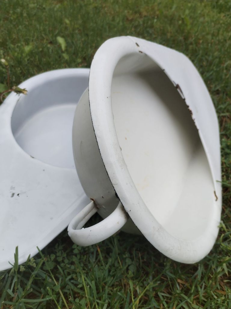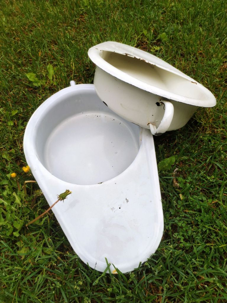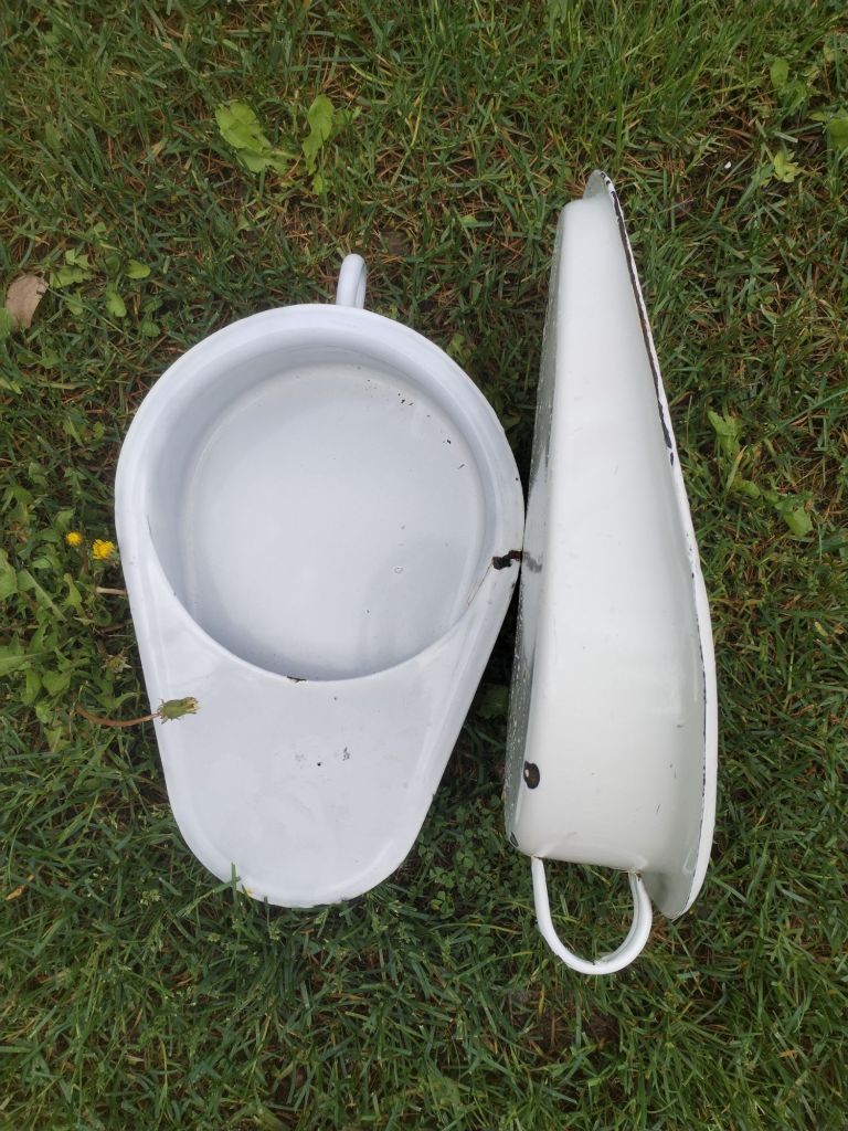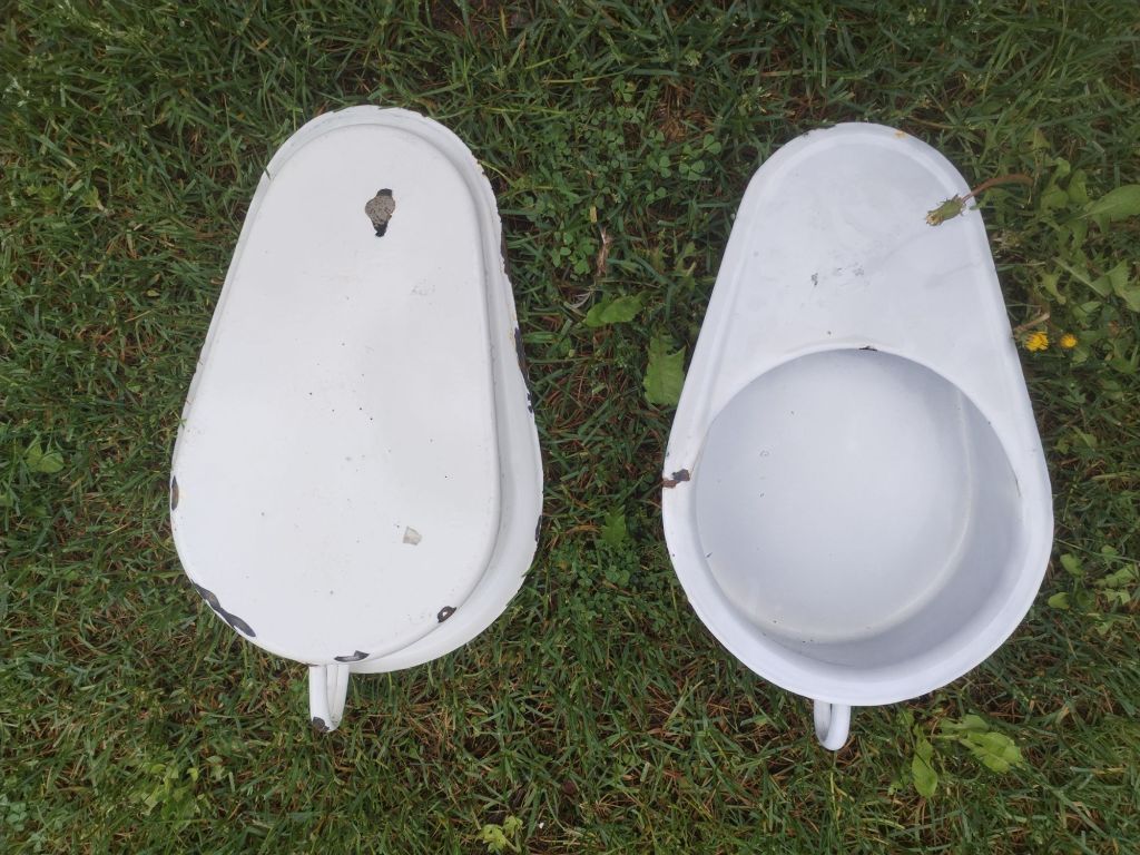 Dos cuñas para usos sanitario fabricadas en metal con un esmalte en porcelana.