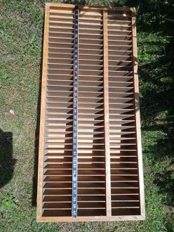 Curioso archivador lleno de casilleros antiguos de oficio. medidas 44 x 98 ( 3 x 19 Cmt ) Numeraciones de casilleros del 5 al 40 x (3 carriles), numeraciones inscritos sobre chapa metálica. PvP: 75€ Construido en madera.