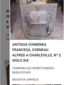 FundiZion: ANCNEMON~ ODELIN ESTUFA SALAMANDRA realizada en Francia, en fundición de hierro colado y cerámica esmaltada. Fabricada por: ANCNEMON~ODELIN Mod FRERES 320 Puerta con acceso al hogar, con ventana de MICA, con bisagras, bandeja reposa cenizas, trampilla de hierro colado y Puerta de hierro cerrado con bisagras. Esmaltada en verde bosque, piezas de fundición en su estado original. En perfecto estado de conservación. Uso preferible carbón, leña o briquetas. Medidas: 30 cmt de diametro 42 fondo c/ bandeja cenizas 70 […]