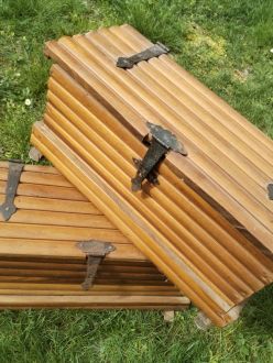 Dos fanegas de uso popular como medida de grano en la agricultura castellana. La realidad Zara en madera enceradas y con remates de chapa y protectores. Asa artesanal realizada en talla de madera. Fanega grande, 75€ med: 82 x 24 x 24 alt fanega pequeña 50 € Med: 70 x 22 x 20 cmt alt P.V.Esp las 2 unidades 100€