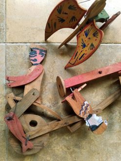 Colección de juguetes antiguos ETNOGRAFICOS, de madera, con móviles construidos de forma totalmente artesanal. Construidos en madera y barritas de hierro, para poder articularles el movimiento con sus giros. Hay 3 piezas 65€ Pintados de forma popular y manual.