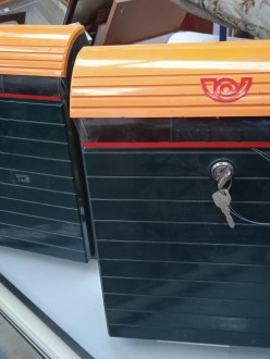 Buzones de CORREOS, nuevos a estrenar, con cerradura, 2 llaves y etiquetas de marcación de dirección. Tapa accesible por corredera. Medidas: 30 x 12 x alt 39 cmt PvP: 65 € unidad.