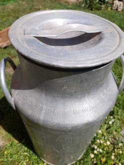 Lechera antigua, con tapa, Capacidad para 40 litros de Leche. Queserías Ibéricas s.a medidas 33 cm y altura 87 cm 95 €